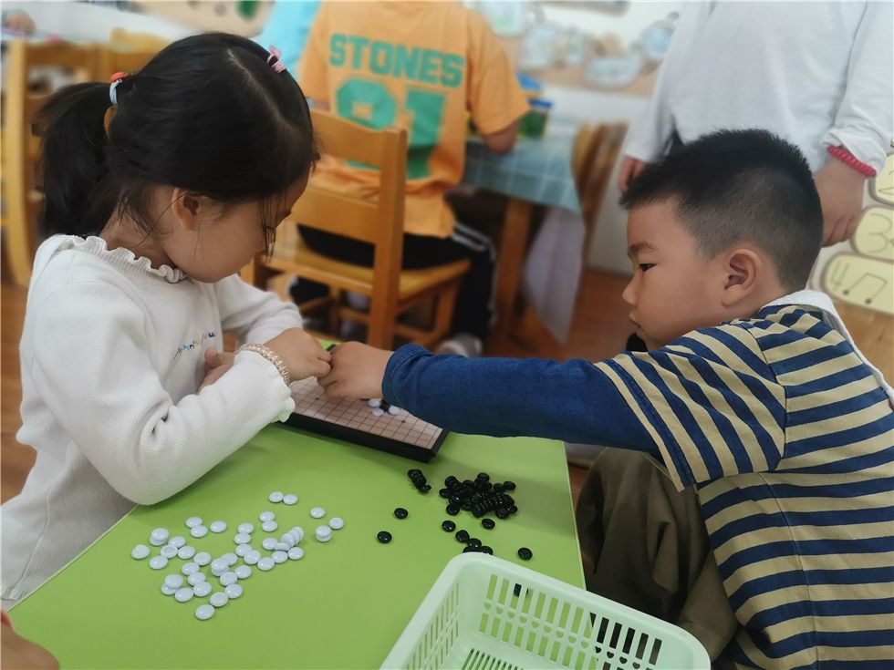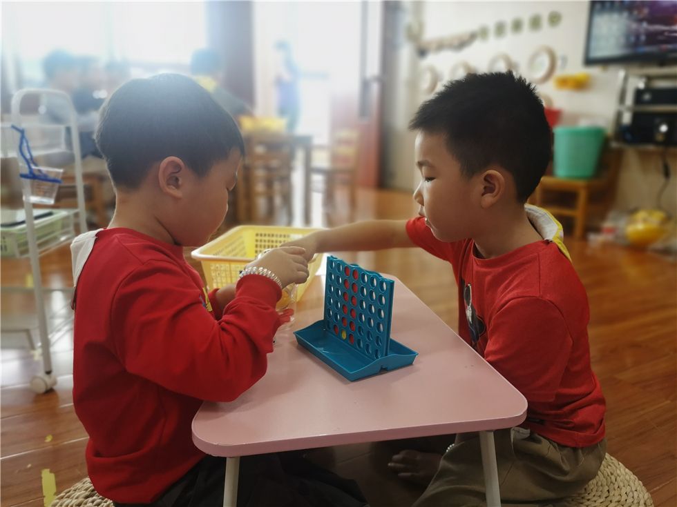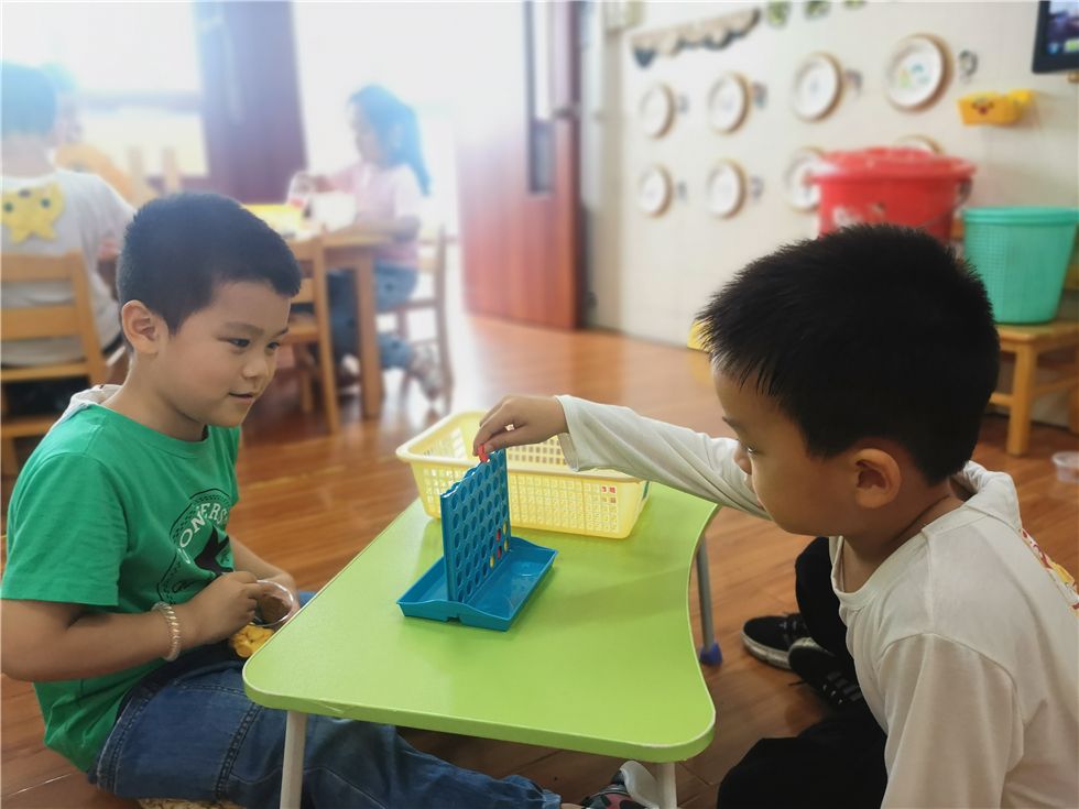 棋艺区是本学期幼儿初次接触的区域,幼儿对于棋艺区充满了好奇和兴趣。飞行棋、五子棋等,在游戏中,幼儿不仅感受到了游戏的趣味性,自身的逻辑思维能力也不断的提高。