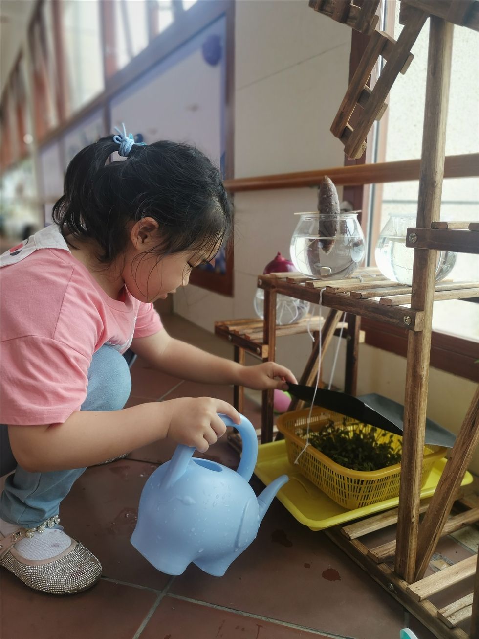 我们的自然角温馨且生气勃勃,幼儿每天会去观察、照料和记录下植物的成长过程,还会将收获的成果带回家与家人分享。