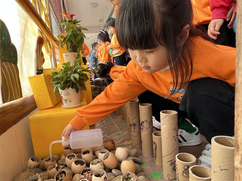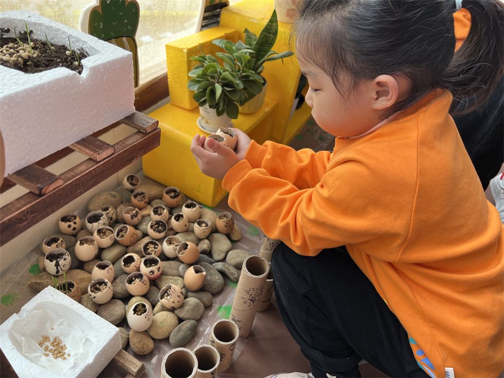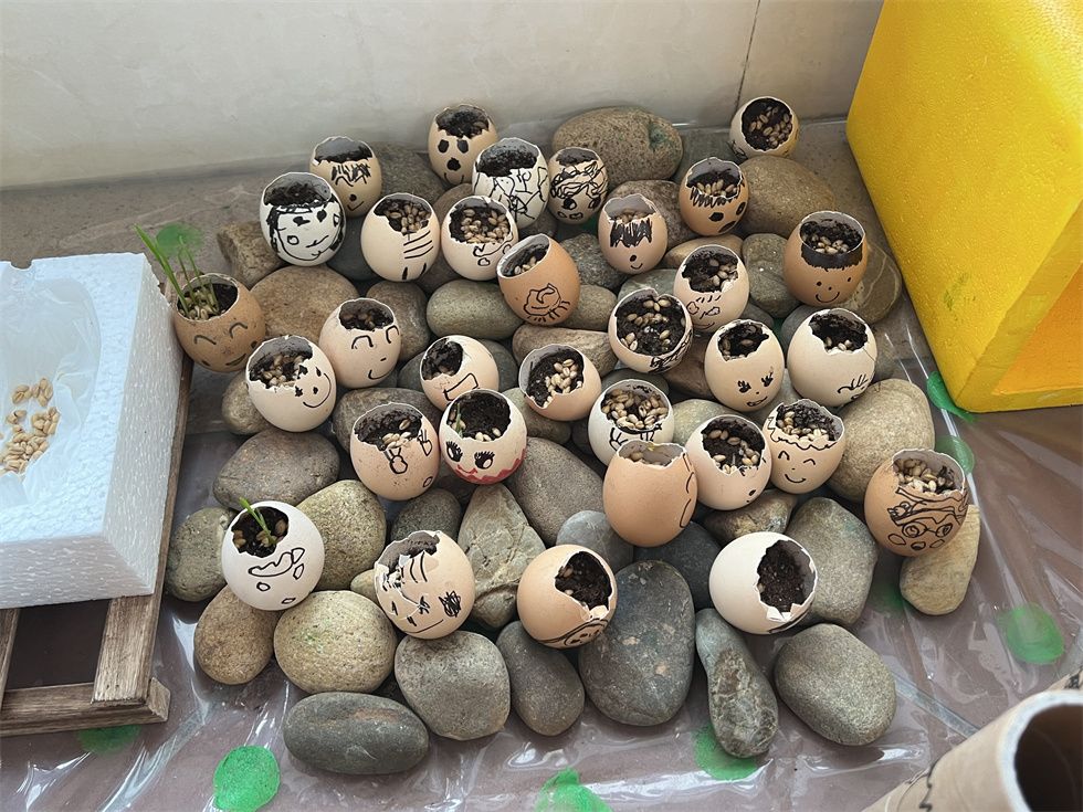 为了让每一位小朋友参与到小植物的护理中,老师给每个小朋友准备了一个蛋壳宝宝,上面由小朋友亲自手绘的表情,专属的蛋壳宝宝就诞生了,一对一的照顾护理让小朋友们更加地专注。