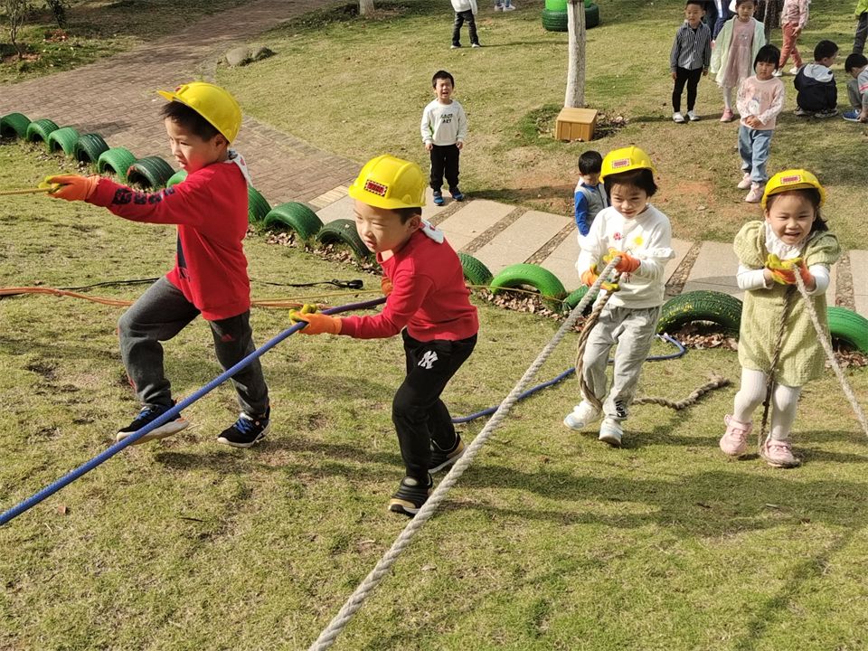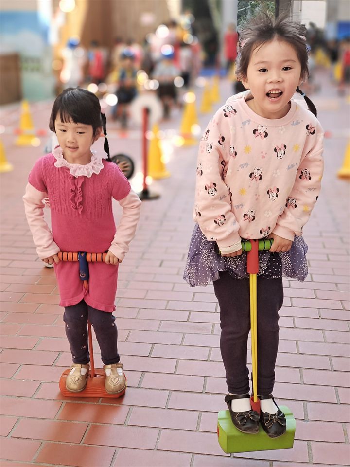 还有小推车搬运工、小马跳跳、对接粘靶球……到处都有孩子们快乐运动的身影。
