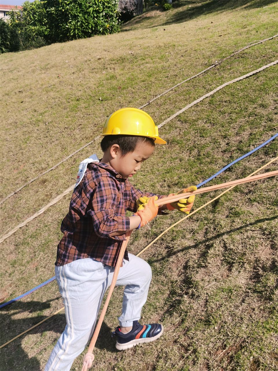 勇敢之路是什么呢?有爬绳区有5条不同粗细的绳子,看着陡峭的山坡,孩子们有点害怕了。没关系,戴上帽子和手套,抓紧绳子,出发吧!老师在山顶等着勇敢者!加油哦!