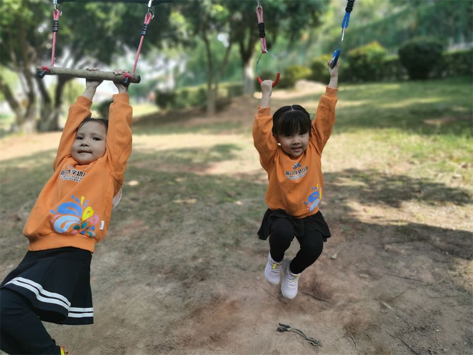 每天丰富的晨间户外自主活动,让孩子们一进园就感受到了健康与阳光的氛围,活力满满地沐浴在温暖的怀抱中,享受自然、自主、自信地快乐运动发展。幸福的小小厦大娃,加油!