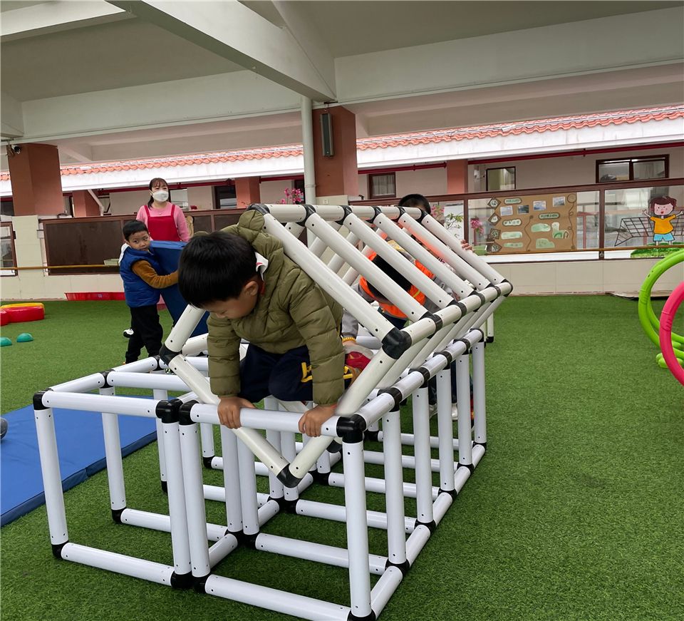 见到新的道具到位,原本安静的钻爬区多了好几个小朋友,跃跃欲试的想尝试一下。