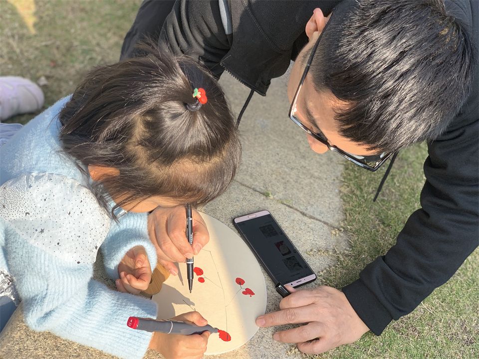 圆圆的扇子真漂亮呀~木制的手柄沉甸甸的,还有好看的流苏坠子~嗯,我要和爸爸在上面画上好吃的樱桃~甜甜的樱桃扇,代表了我送给幼儿园妈妈甜甜的爱~