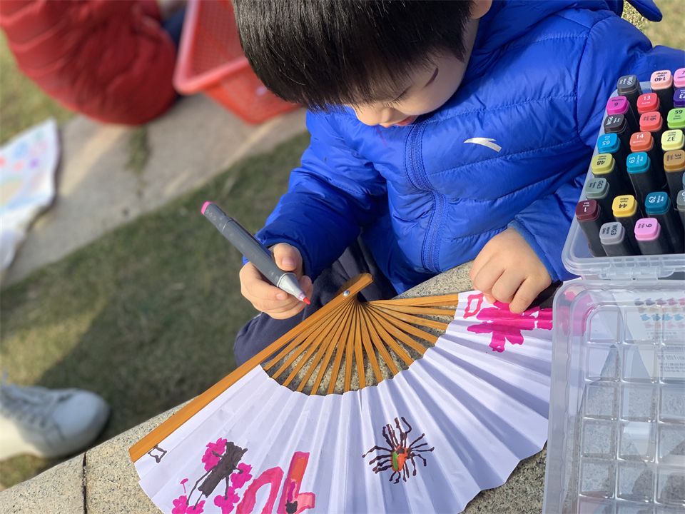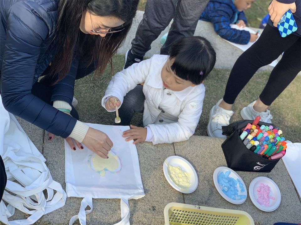 在征集了萌娃们和家长们的意见后,老师们带来了许多可供萌娃进行再次创作的宝贝,有:简易帆布袋、扇子、毛根、发箍等,还带来了水彩颜料这些创作工具。萌娃们见到喜欢的水彩颜料,欢呼雀跃着想要快快的展示自己的绘画本领。别着急,让我们跟着老师一起来看看怎么把它们变成更加漂亮的礼物吧~