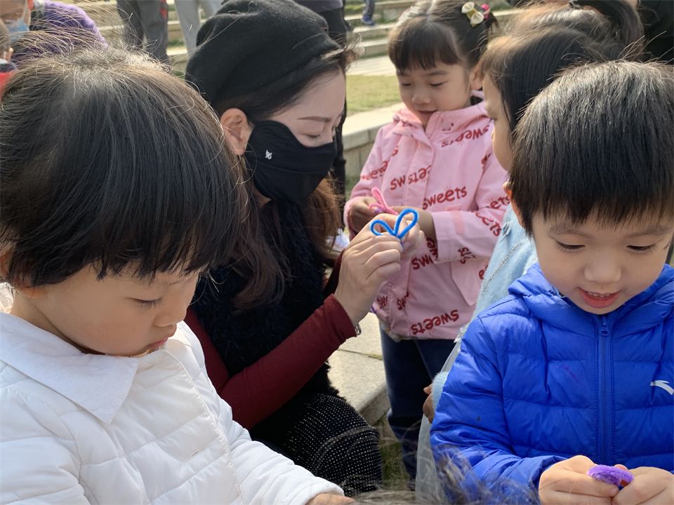 哇~梅子老师在教我们用毛根折“兔子耳朵”,哇~小兔子的耳朵真可爱呀~我也会我也会,快看,我的小兔子耳朵一动一动的,好像听到了大家对幼儿园妈妈的祝福呢~