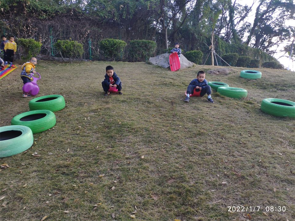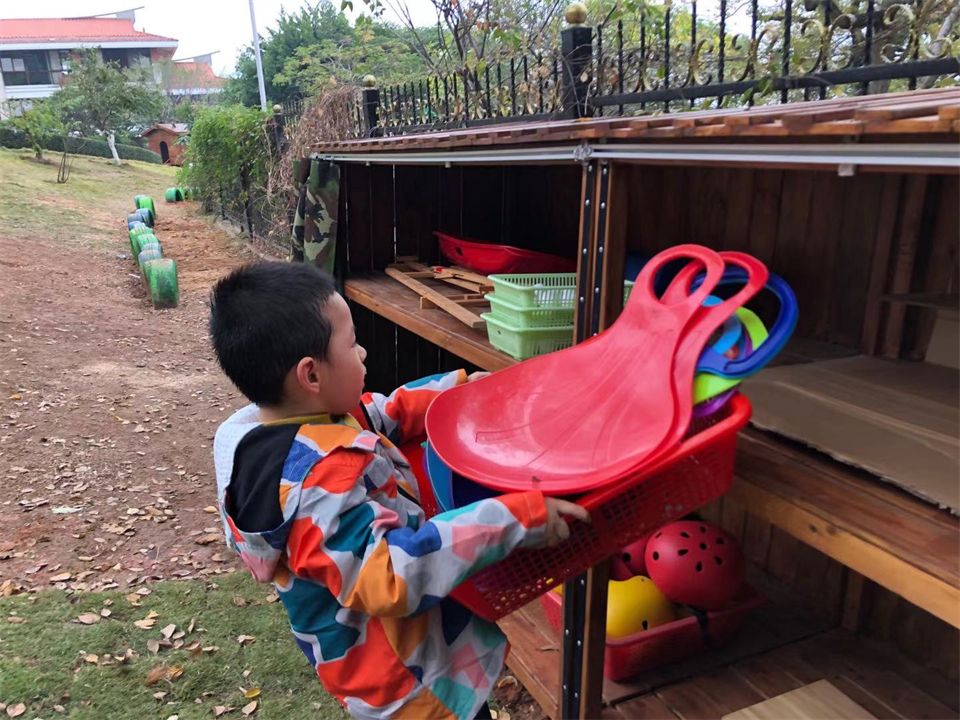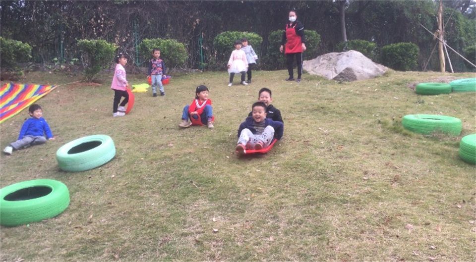 瞧,中七班的萌娃们自己的游戏自己设计,自己的玩具自己搬,真是一群能干的宝贝。萌娃们和玩具们交起了朋友,正开心的滑草呢~