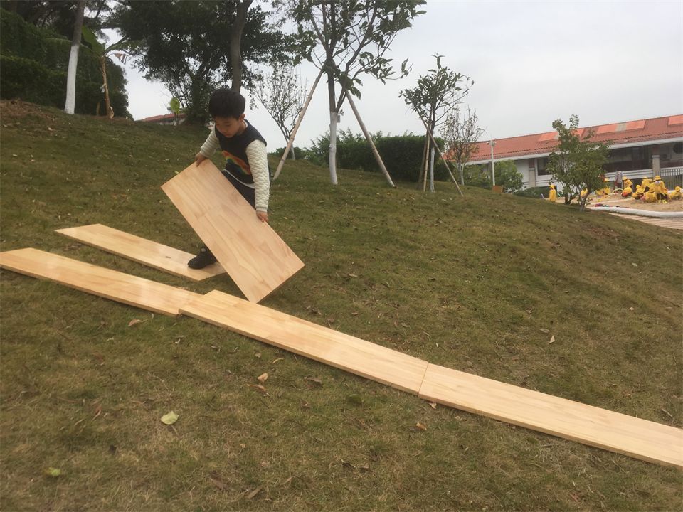 还有漂亮的木板,一块一块的木板摆在一起,连成长长的木板滑道就可以滑草啦~,还有纸皮也要连成长长的滑道~