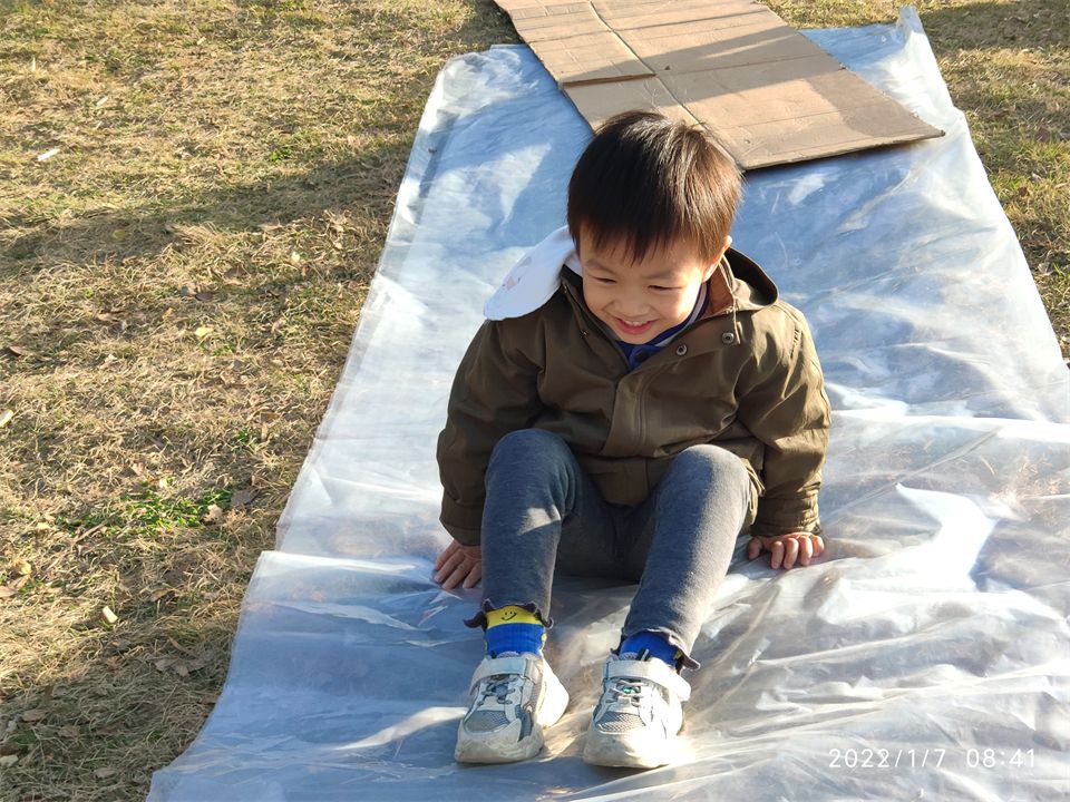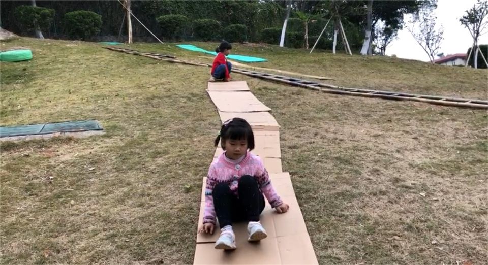 萌娃们使用滑草板、滑溜布、木板、垫子、纸箱等,在安全的前提下,自己摆放材料、自主尝试选择不同材料,自己创设游戏,在游中感受到了下滑速度的异同,发展了身体的灵活性和协调性。瞧,萌娃们的脸上,洋溢着成功挑战自我的笑容~