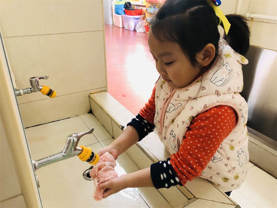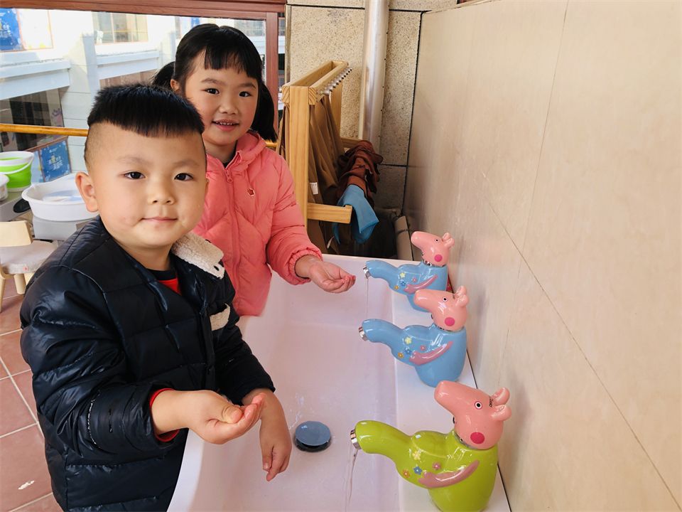 有一天盥洗环节,孩子们在水池边议论纷纷。