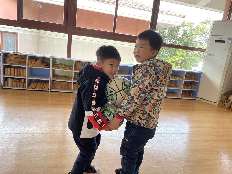“球”,是幼儿园最常见的体育器械,它时常出现在晨间活动场上,也是孩子们常常捧在手心里的“宝”。“球”有着它特殊的“弹跳”本领,时而低,时而高,吸引着孩子们去游戏。球类运动锻炼着孩子们的手、眼协调能力,促进肢体动作的灵活发展。下雨的晨间户外早已没了中七萌娃们的身影,咦,他们去了哪里呢?听,综合活动室里传来了孩子们欢悦的笑声,我们一起去看看他们在玩什么游戏吧~