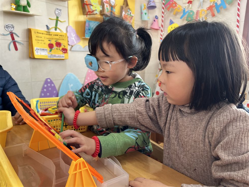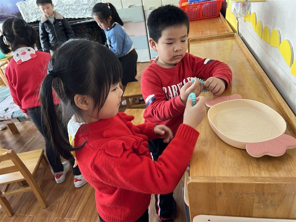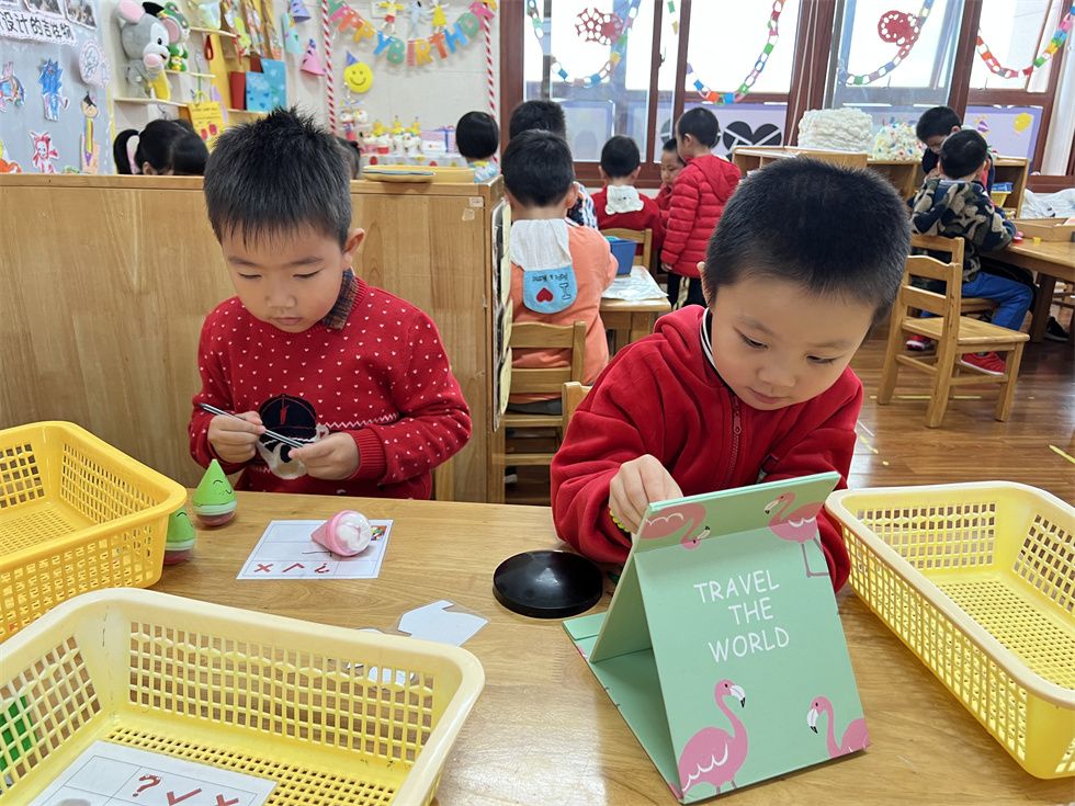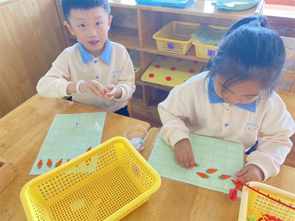 益智区的小朋友正在比比谁的胡萝卜多耶,快猜猜谁会获胜吧!