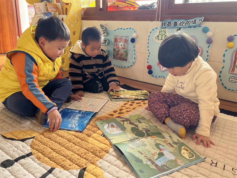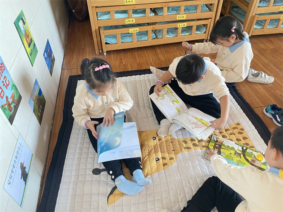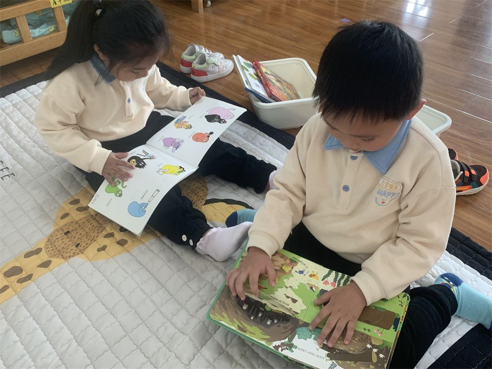 “老师说要一页一页的翻!”这是彤彤教上官翻看图书。小朋友们被精美的绘本中的内容吸引,时而轻声讨论书中的故事,时而独自欣赏书中的美妙!