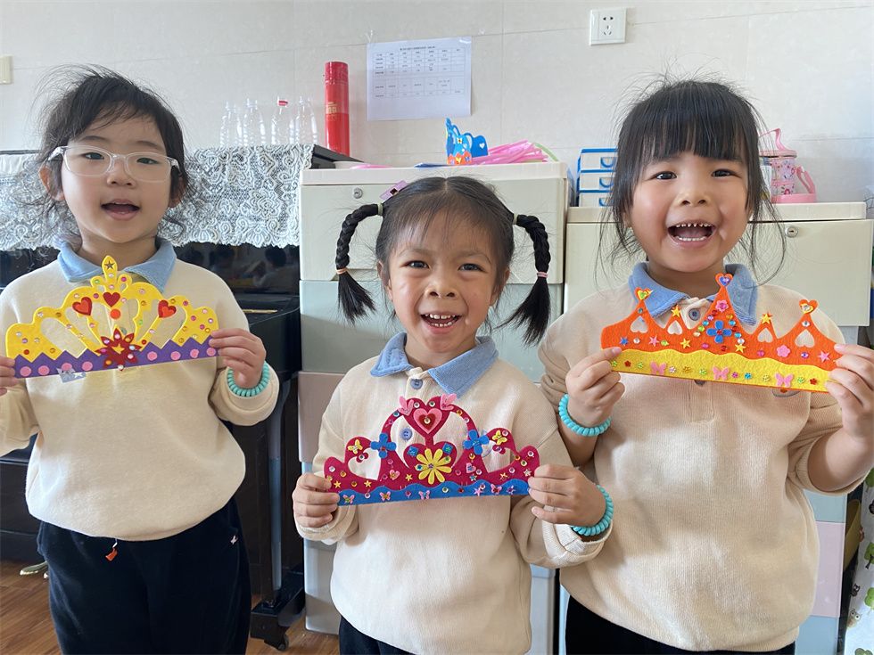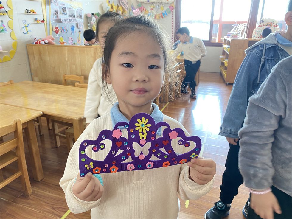 “老师你看,这是我们制作的要拿去义卖的皇冠,好不好看呀!”