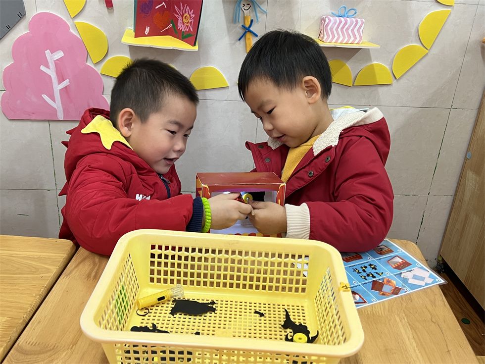 轩轩和乔治正在探索光和影子的秘密呢!