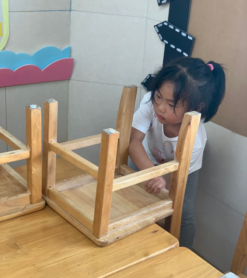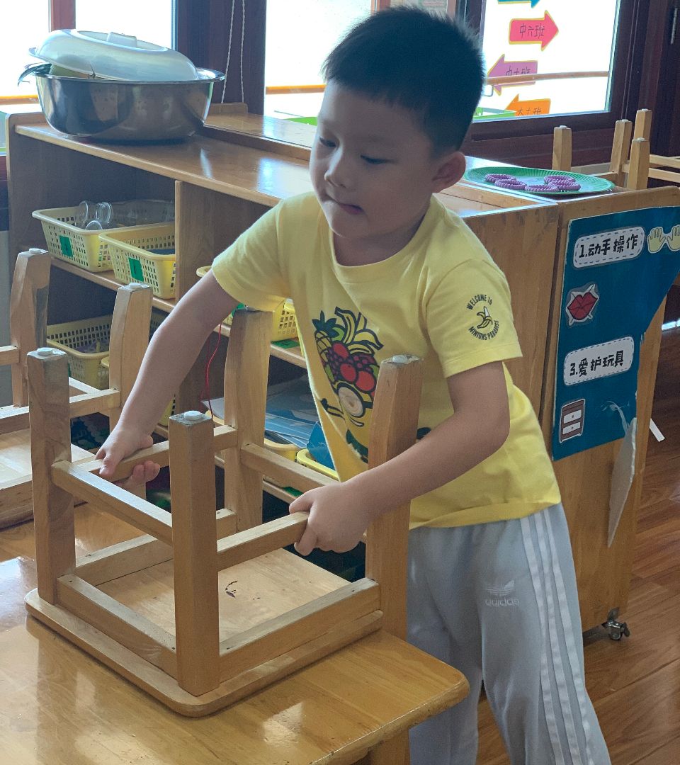 “我吃了很多饭,变得很强壮,可以帮忙老师拉鞋凳了。”