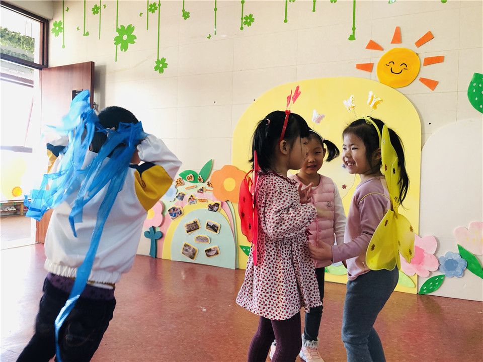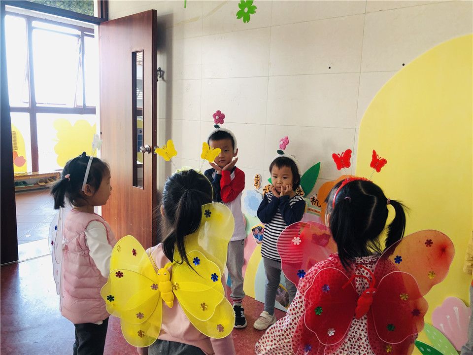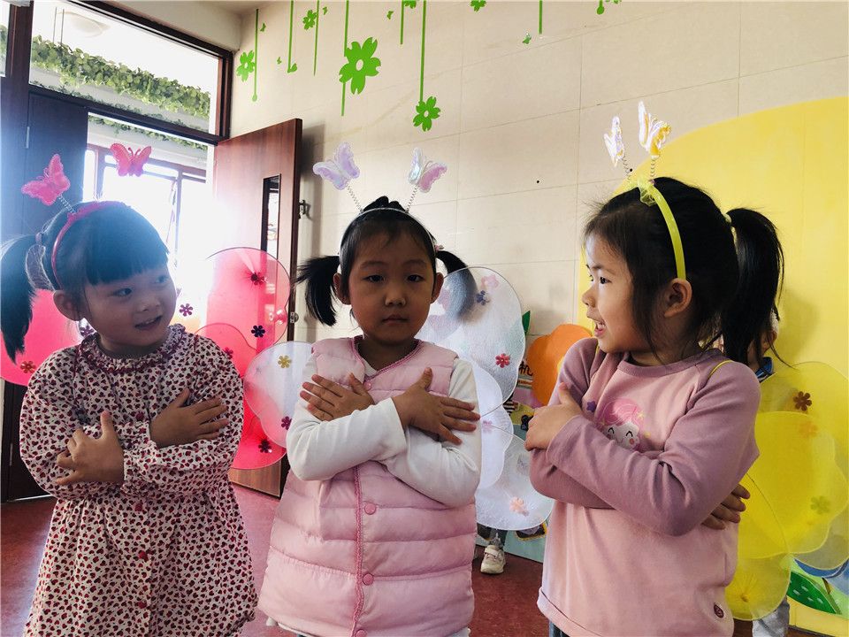 小朋友们对于近期学习的语言活动《三只蝴蝶》很感兴趣,餐前、自由活动时间都在讨论,迫不及待的想要进行表演。