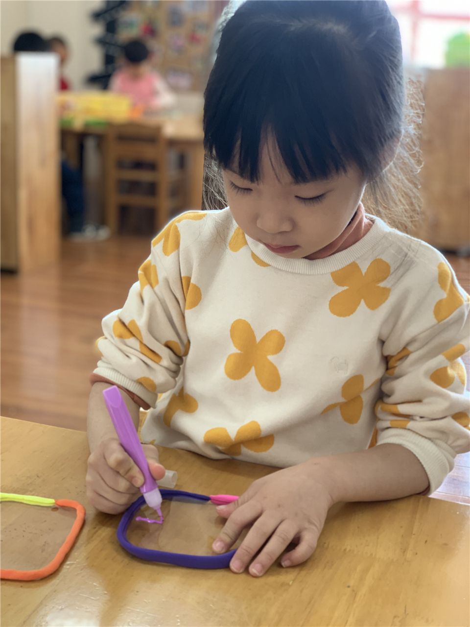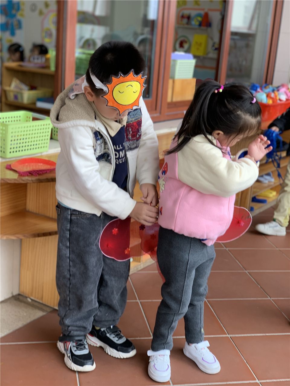 游戏时,宝贝们的小手也发挥着重要的作用。不仅能搭建出各式各样的作品,还能帮助其他小朋友穿戴道具。