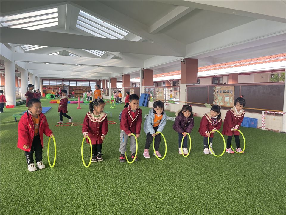 呼啦圈是生活中常见的小型轻器械,利用呼啦圈开展户外体育活动,趣味性强,深受宝贝们喜爱。瞧~小小的呼啦圈,在宝贝们的手中像魔法棒,玩出了新花样,让我们和宝贝们一起开启呼啦圈花样玩法的旅程吧!