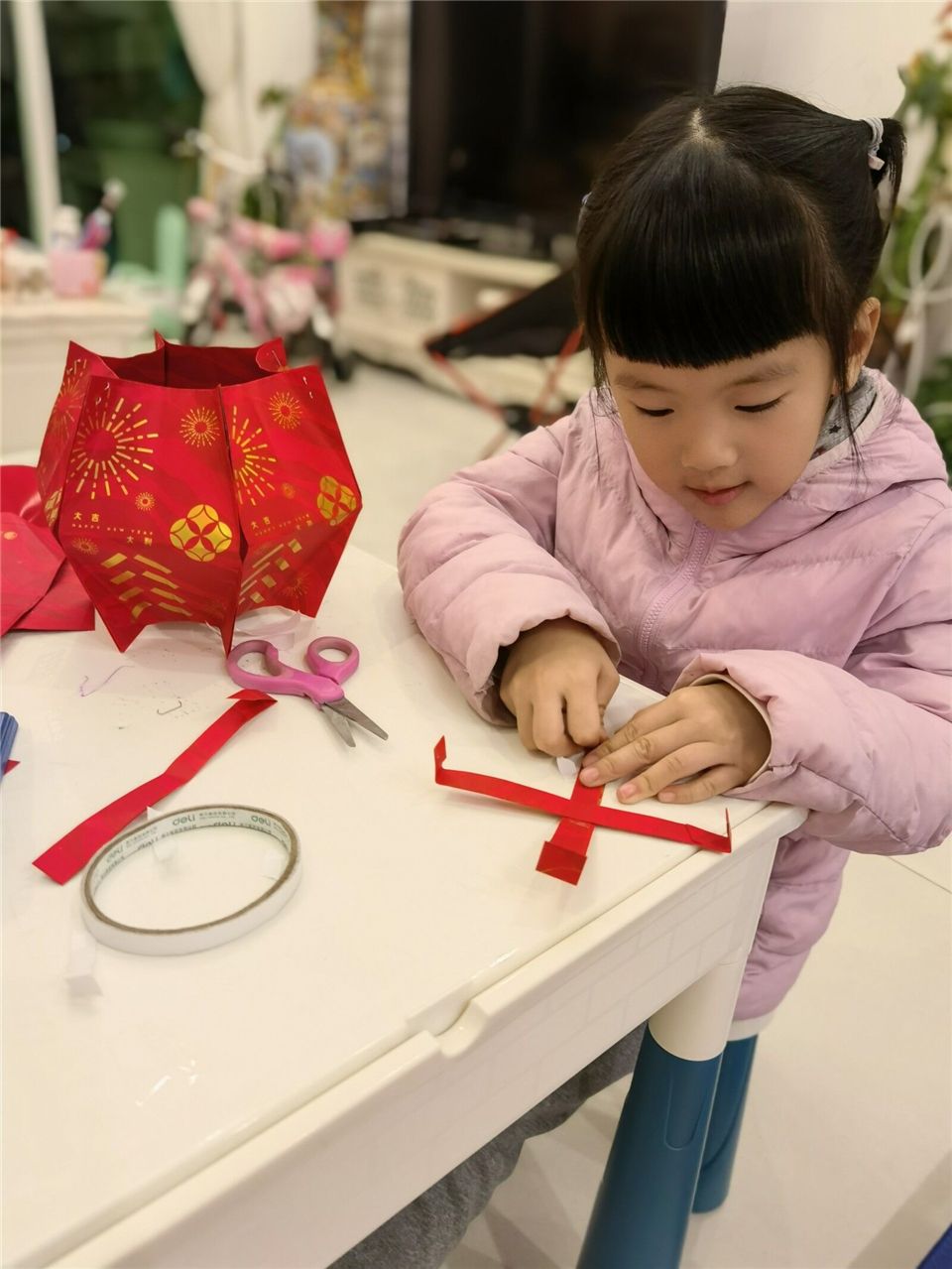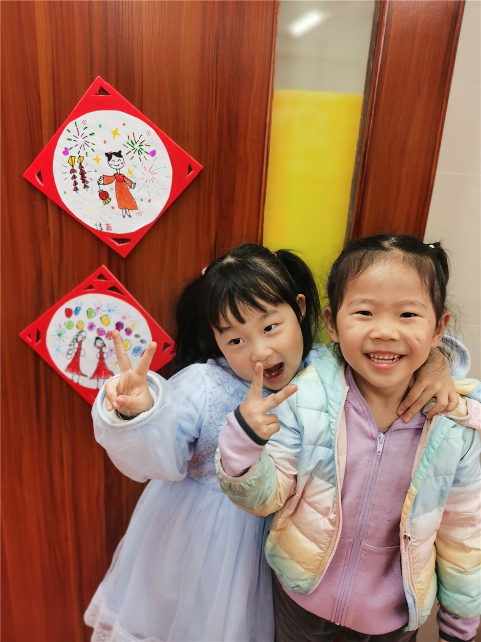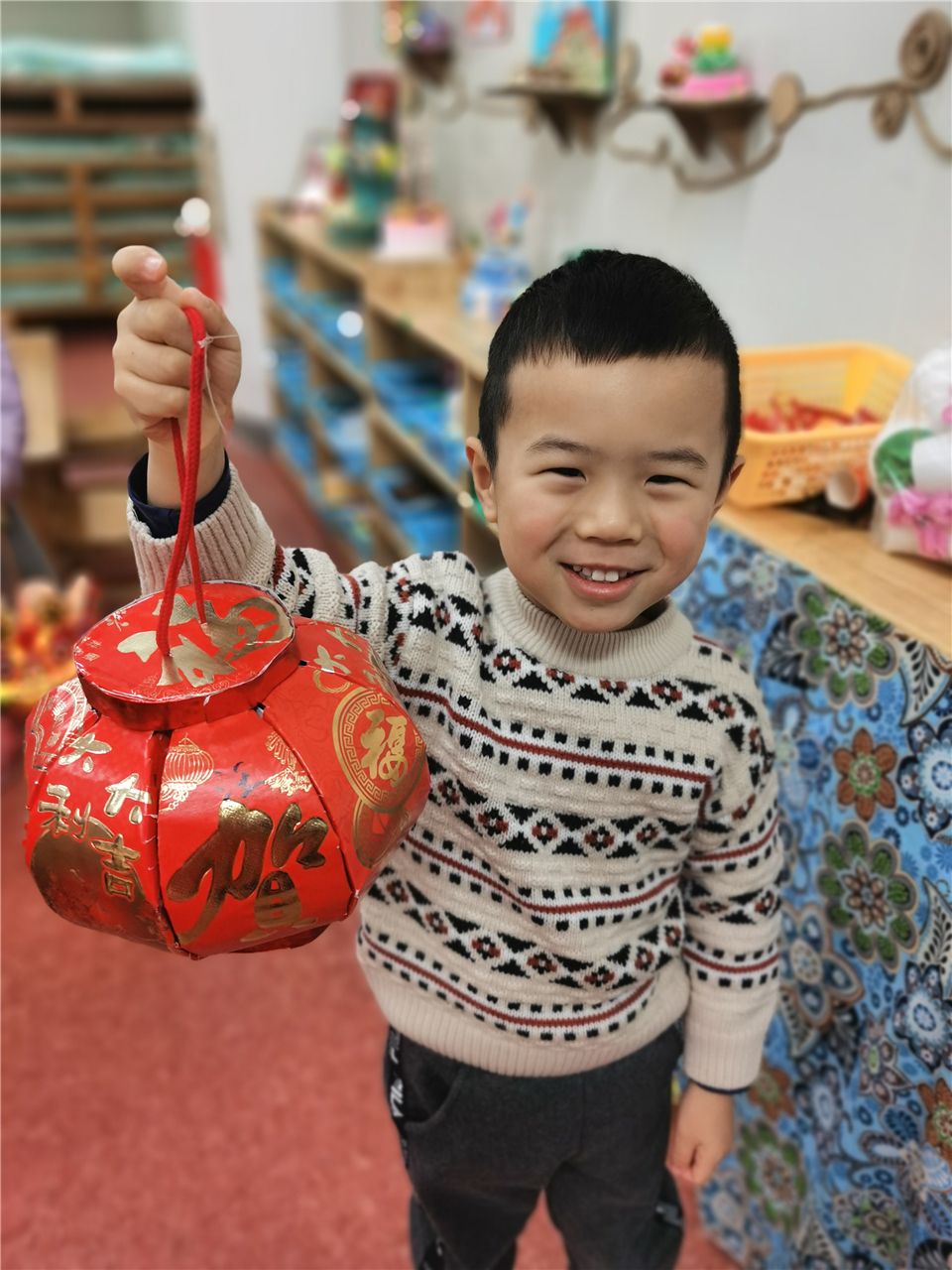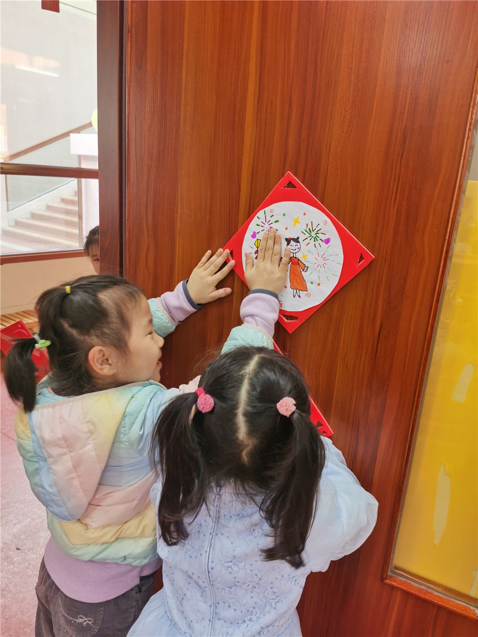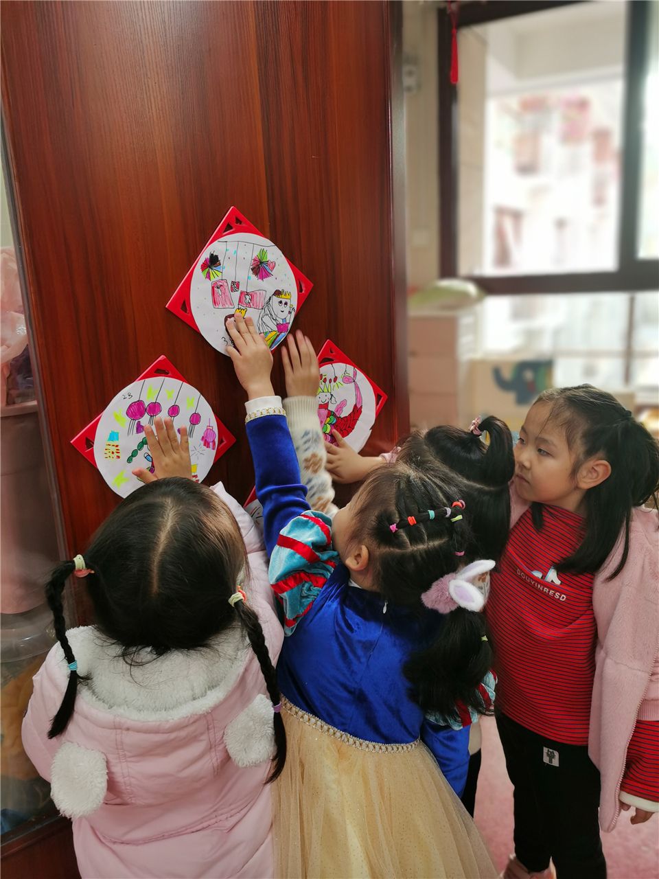 看,小朋友们一起合作选材料画画、做灯笼、挂“年画”……怀揣着对新年的美好期待,精心地“打扮”着教室。