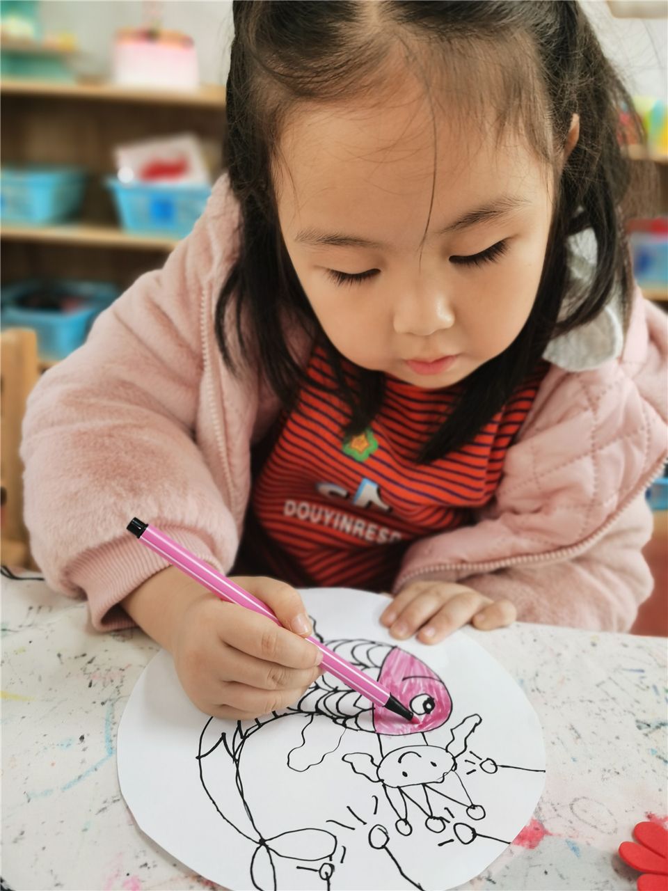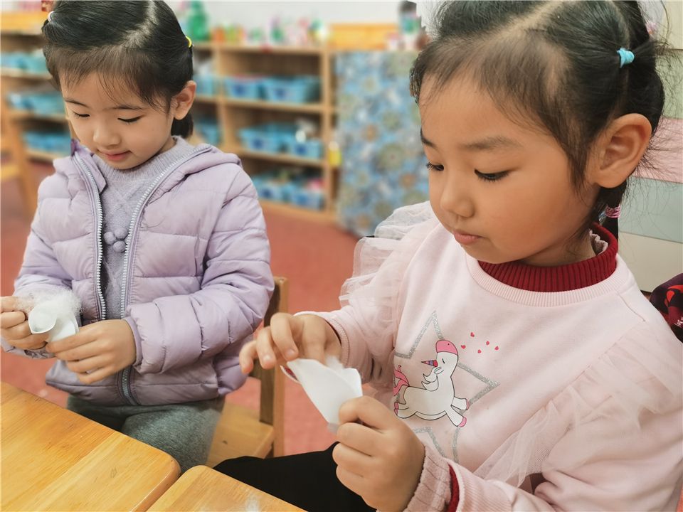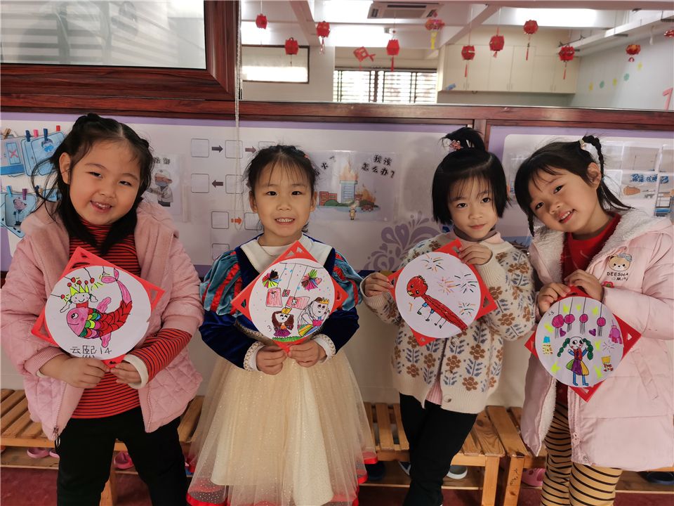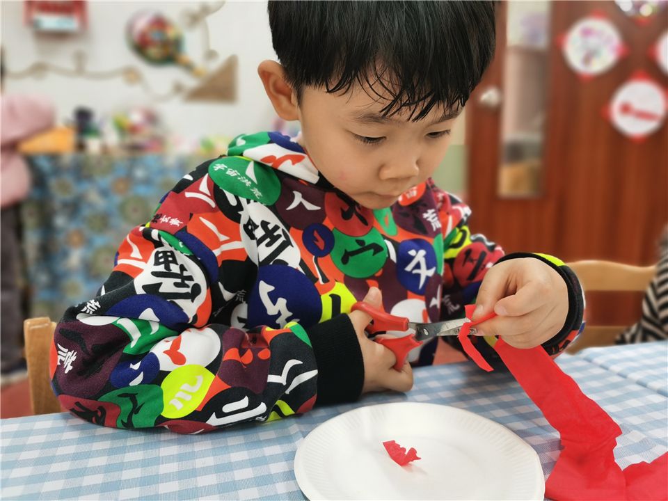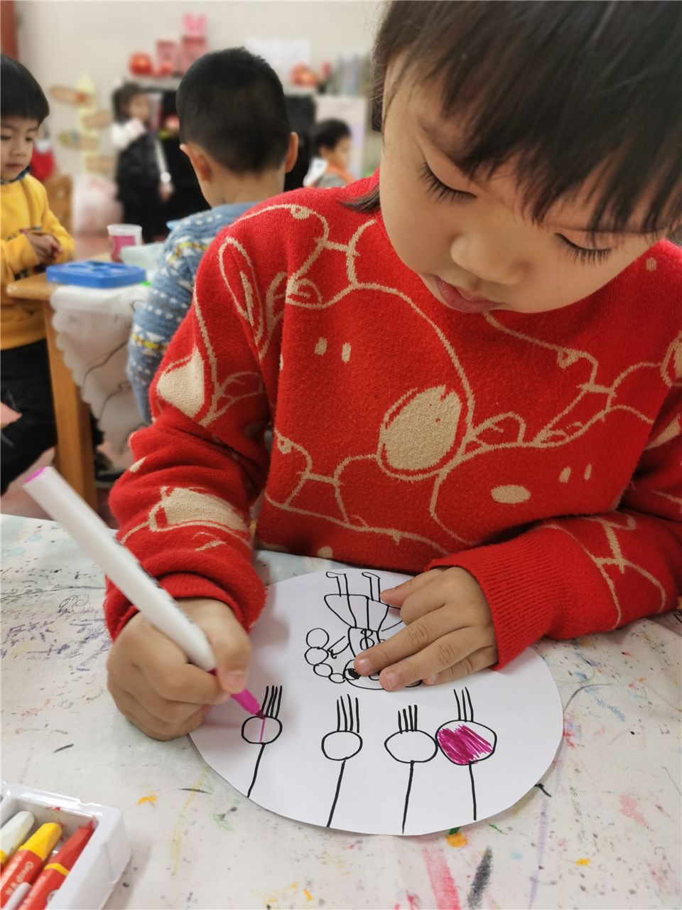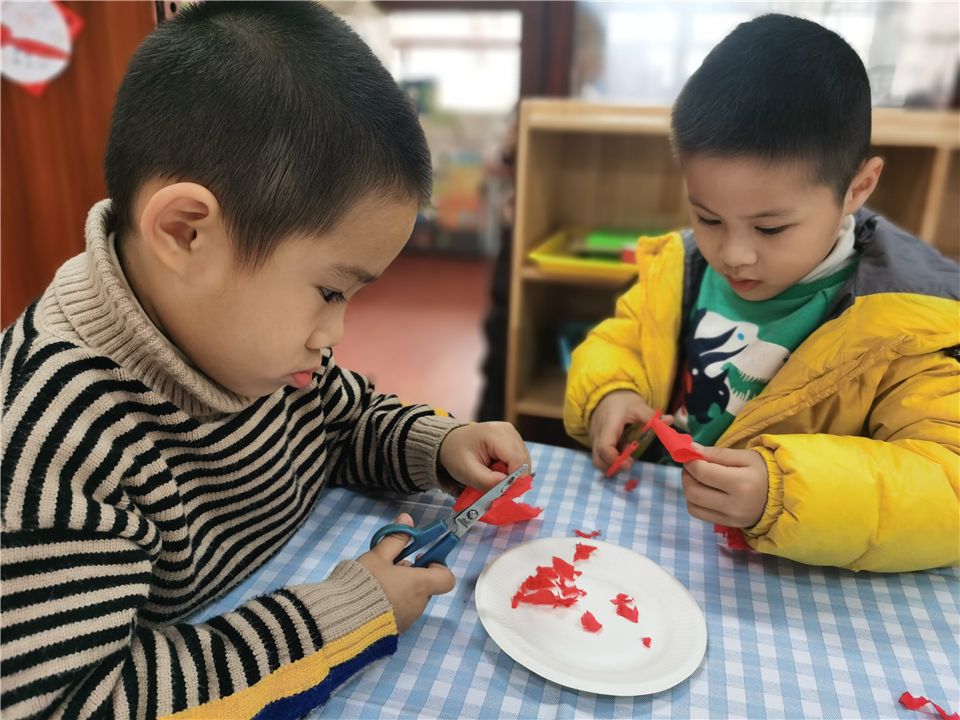 看,小朋友们一起合作选材料画画、做灯笼、挂“年画”……怀揣着对新年的美好期待,精心地“打扮”着教室。