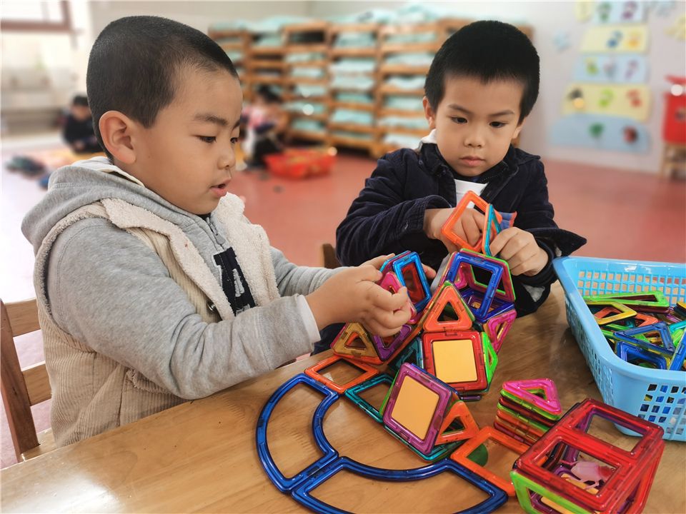 这是一次游戏中,孩子们在科学区玩磁铁玩具时的对话,引起了大家的注意。磁铁可以吸住什么?它有没有不能吸住的东西呢?一块磁铁的磁力到底有多大?它还藏着哪些秘密?带着诸多疑问,一场关于磁铁的探索之旅便开始了……