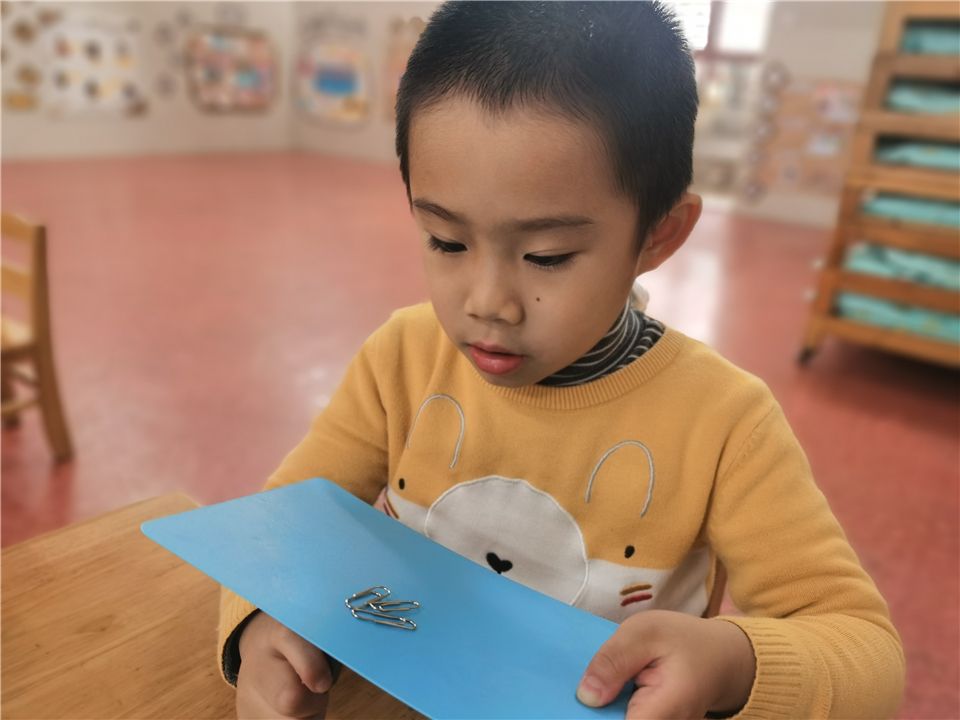 “磁铁隔着泥工板也可以吸到回形针哦!”