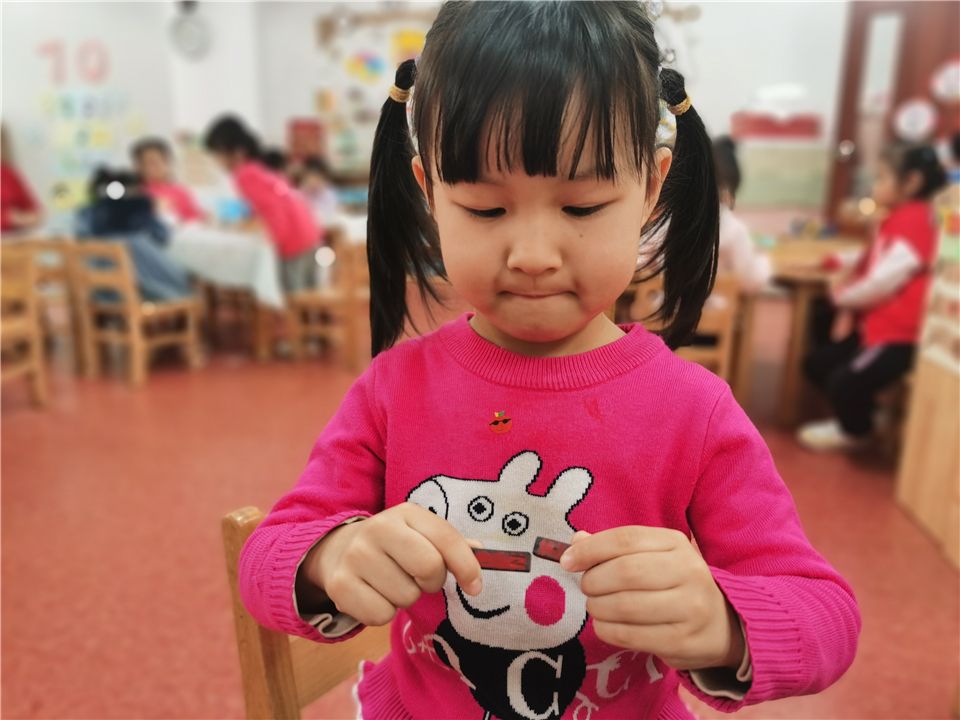 “老师?为什么我的磁铁只有一个颜色,佑佑的有两个颜色啊?”