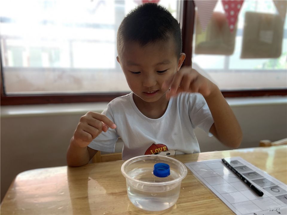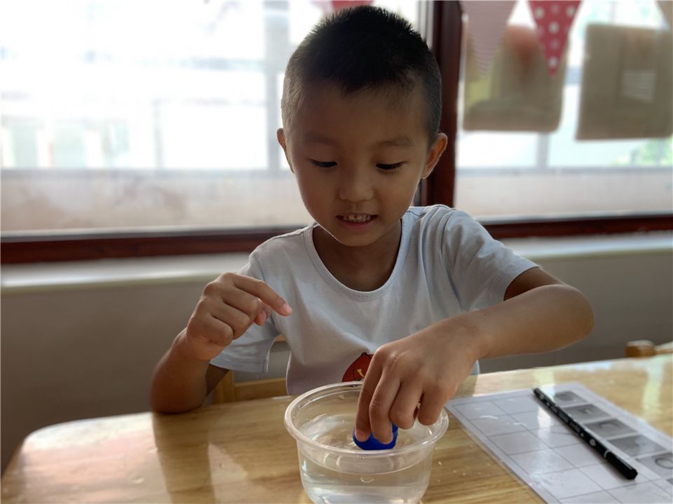 “我猜对了,瓶盖可以浮在水面上。”小晔一脸兴奋地说。