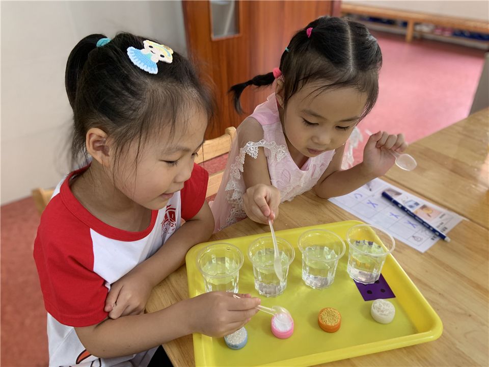 水是我们日常生活中不可缺少的,我们每天都离不开它,正是因为水与我们生活的密切关系,幼儿早早就接触并认识了它。在通过一次次的探索和一次次的尝试,中一班的宝贝们不仅获得了一个又一个关于水的秘密,也在这过程中体验到探索的乐趣!