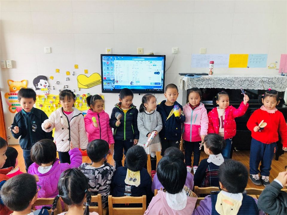 孩子们对音乐会有了一定的经验以后,在接下来的表演游戏中明显有了进步,不会像之前那样随意敲击乐器,同时也开始注重音乐会的礼仪了。但是就在这时,新的问题又出现了:这么多人演奏乐器,我们该怎么配合?