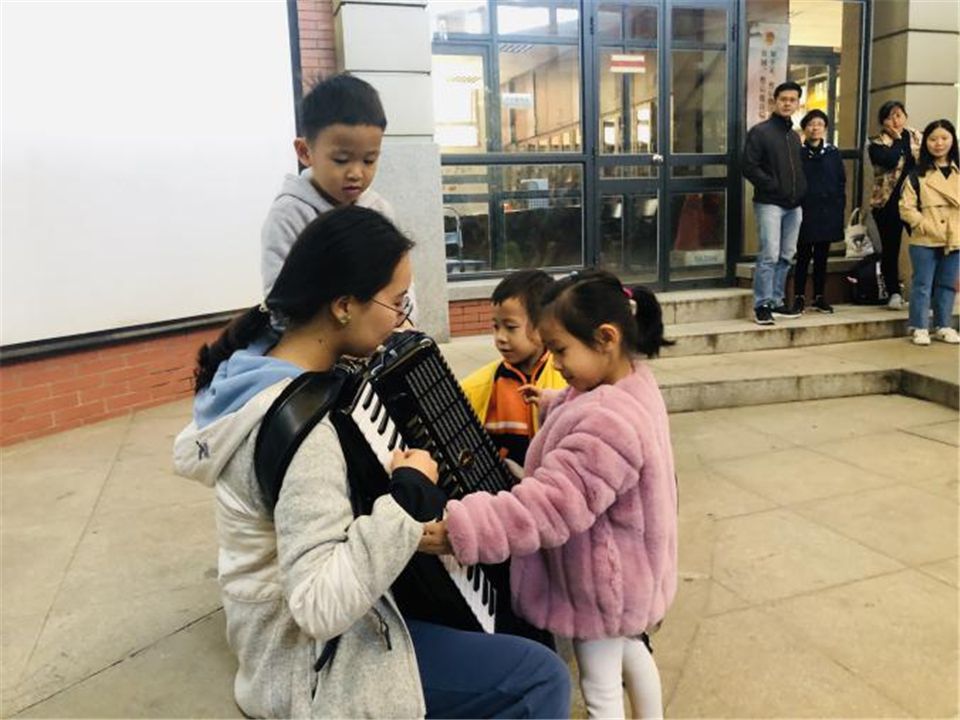 仅仅只是通过查阅资料来了解音乐会,孩子们对于音乐会的认识依旧是粗浅片面的。在《指南》中指出:“幼儿的学习是以直接经验为基础,要最大限度地支持和满足幼儿通过直接感知、实际操作和亲身体验获取经验的需要。”于是,我们利用厦大高校资源联系了厦大艺术学院的大学生哥哥姐姐们为我们演奏一场音乐会。