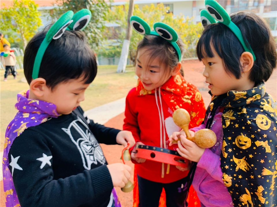 在一次《摇滚青蛙》的表演游戏时,“小青蛙”们经过了一番打扮后,音乐会开始啦!“小青蛙”们纷纷奏响手中的乐器,歌曲还未结束,作为观众的昊宇便打断了音乐会:“你们这样乱敲好吵啊!这才不是音乐会。”那么音乐会到底是什么样的呢?小朋友们你一言我一语讨论起来。看到孩子兴趣盎然,我意识到这是一个很好的出发点,于是,我利用厦大艺术学院的高校资源,和孩子们一起开展了一系列音乐会的探究活动,在大自然和社会文化生活中萌发孩子对美的感受与体验,丰富其想象力和创造力。