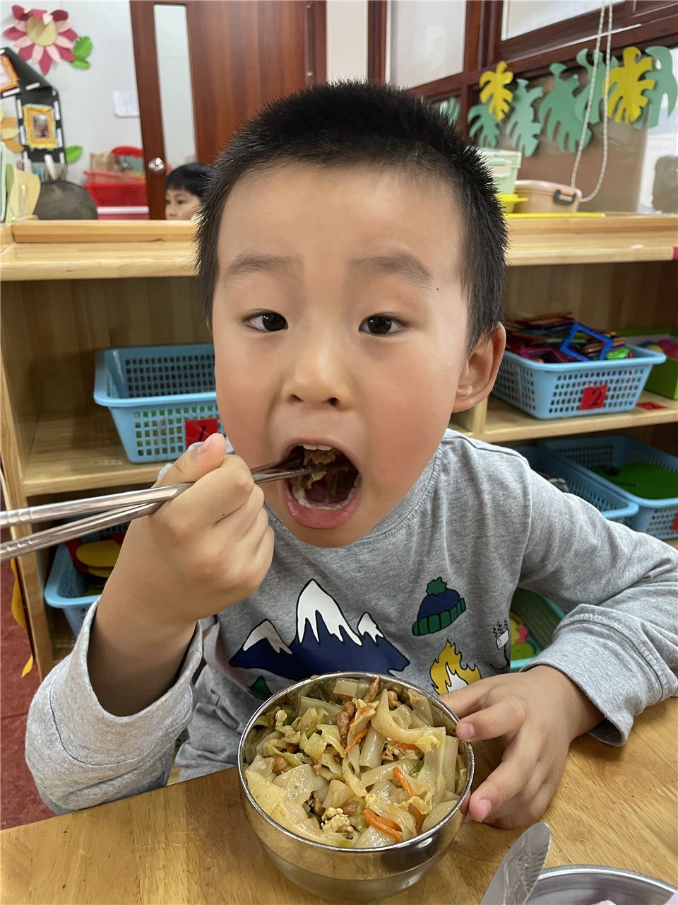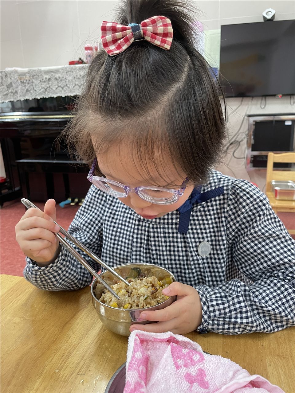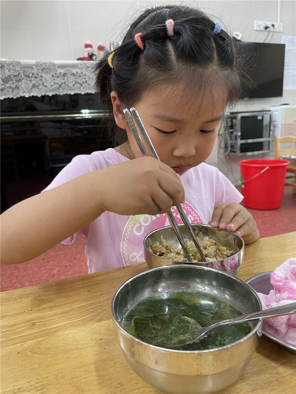 作为中班的哥哥姐姐们,萌娃们通过不断学习已经会用筷子吃钣。