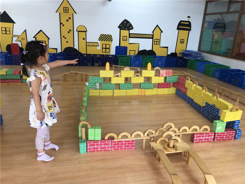 “这是我做的火车站的等候的休息区,从这个休息室走到外面就可以做去做火车了”,苗苗认真介绍自己的搭建的休息室。