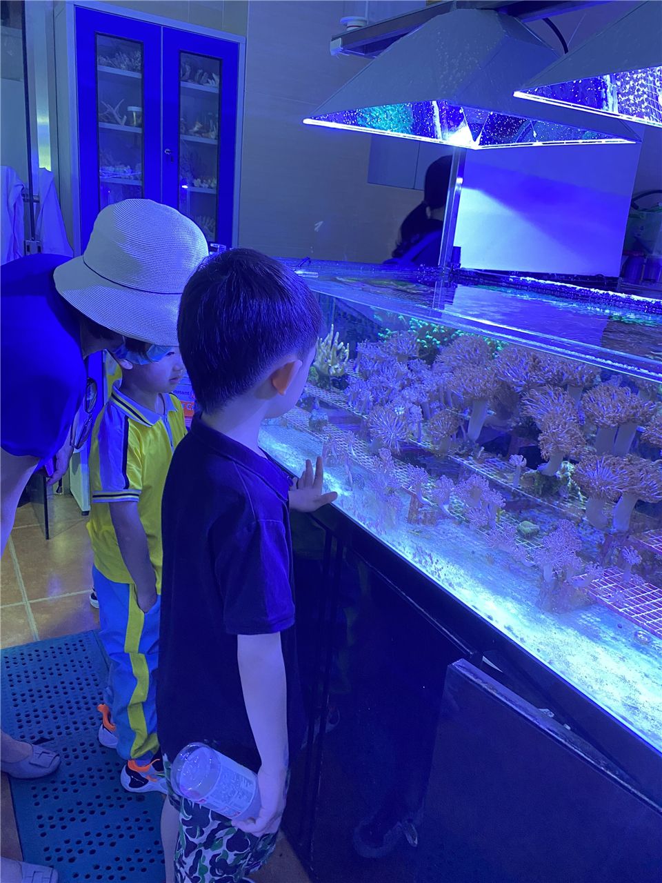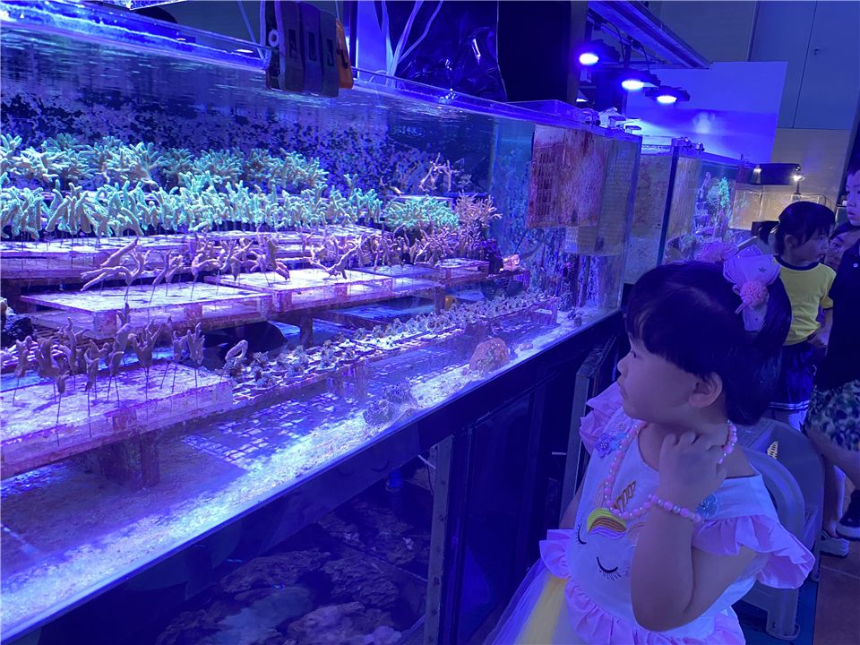 在珊瑚馆,还有许多多的惊喜等待着孩子们,映入孩子们眼帘的是各种各样颜色艳丽的活珊瑚和热带鱼。孩子们走到珊瑚馆的每一处地方,小眼睛都被深深地吸引着,海洋生物的美丽让孩子们流连忘返。