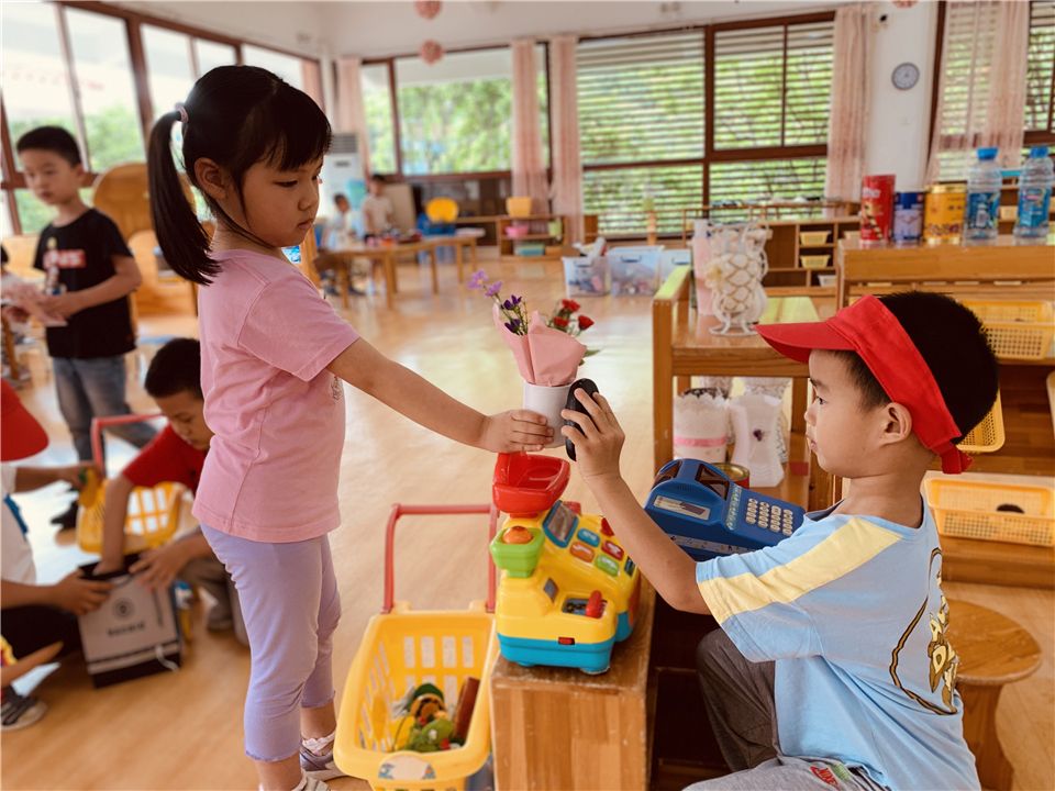 幼儿园角色游戏是小朋友按照自己的意愿进行的一种活动。孩子们通过想象,创造性地模仿显示生活的活动,它提供了模仿、再现人与人关系的机会,为小朋友形成良好的社会交往能力打下基础。