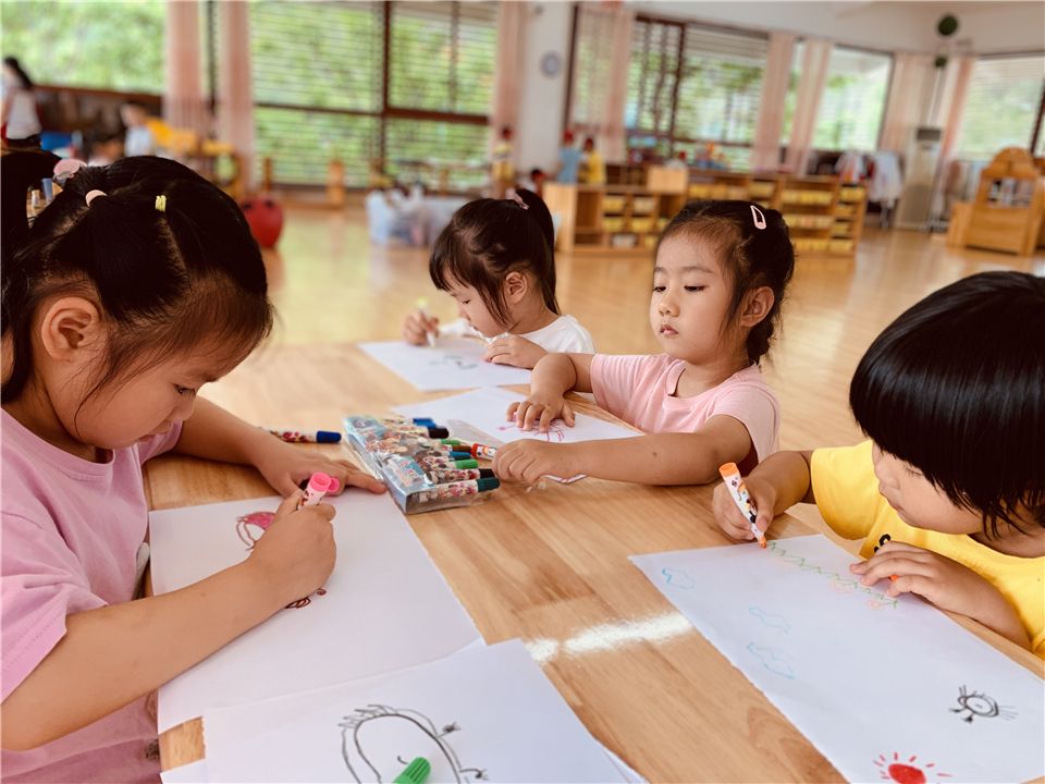幼儿园里,“陈老师”正在教小朋友们绘画,“李老师”在一边准备着等下的点心,偶尔有一个小朋友不专心,我们的“陈老师”就会耐心地提醒她。
