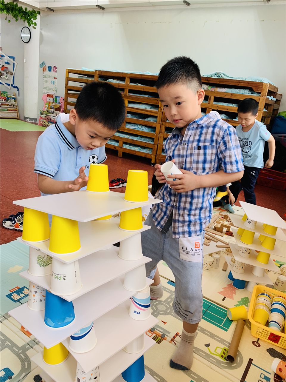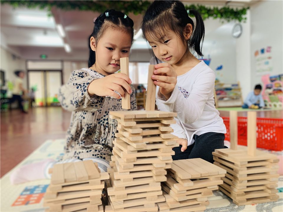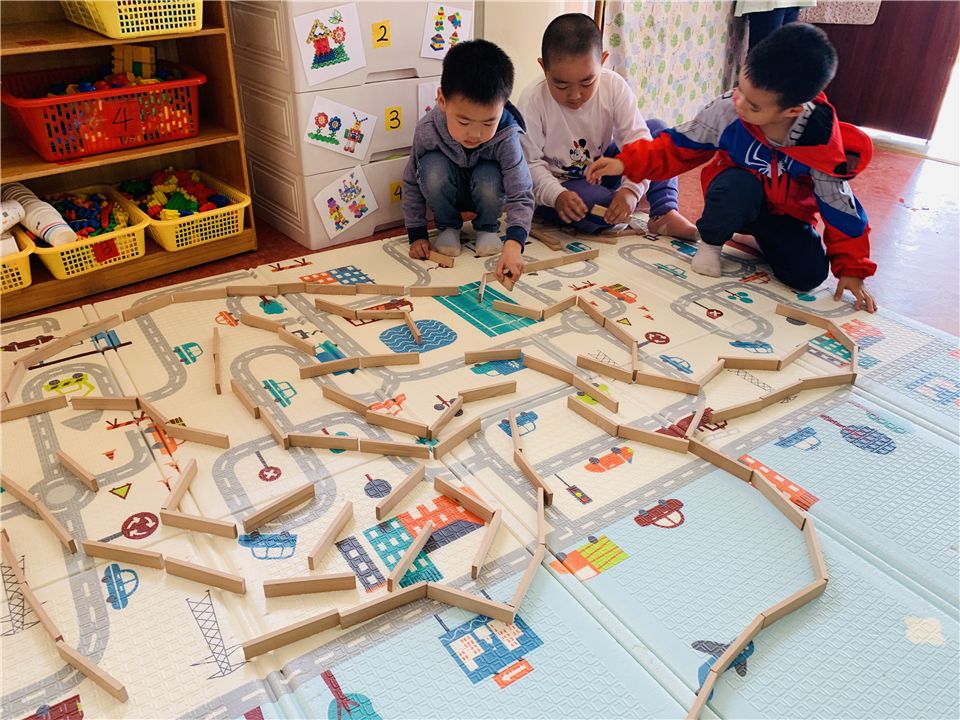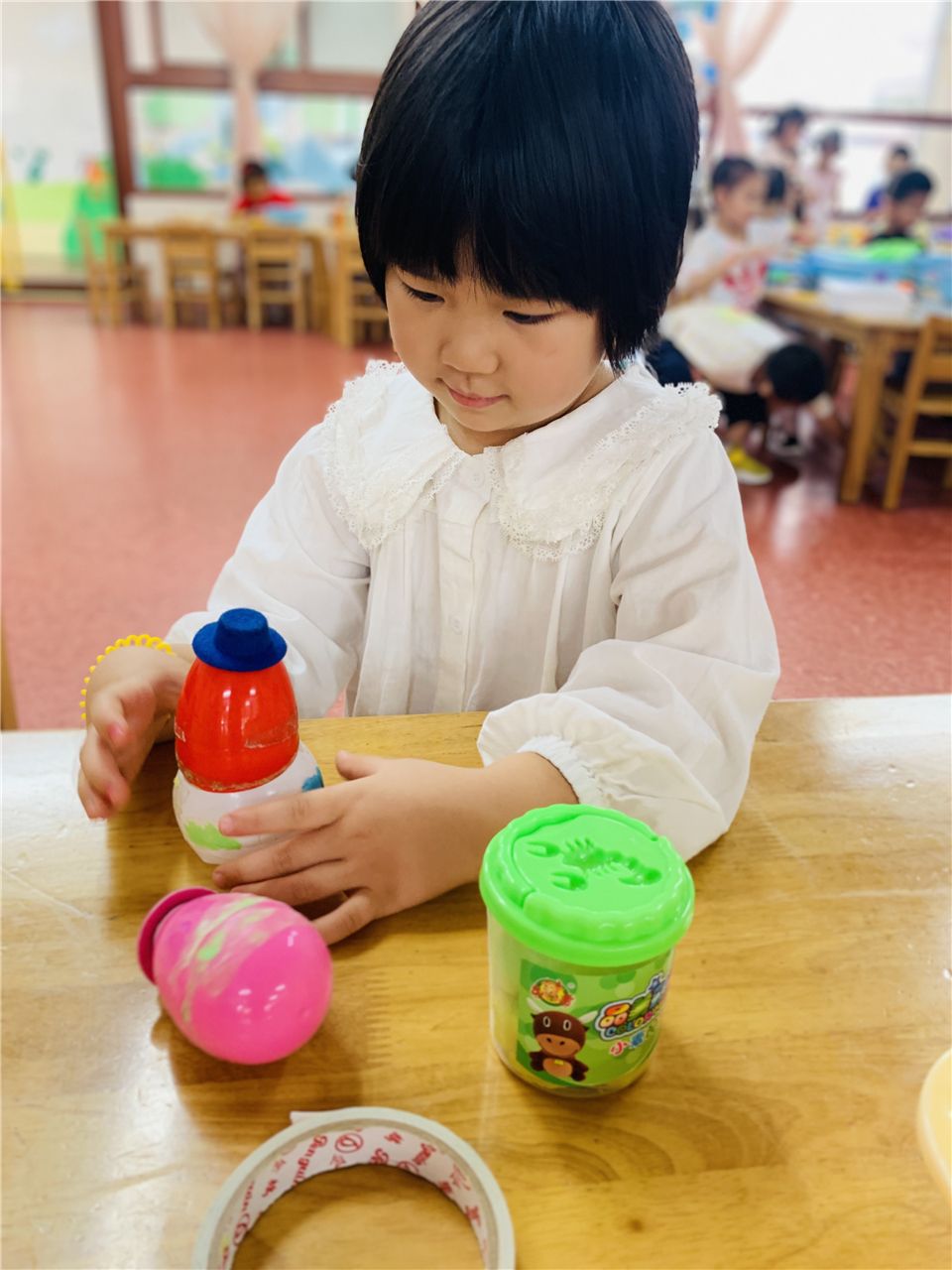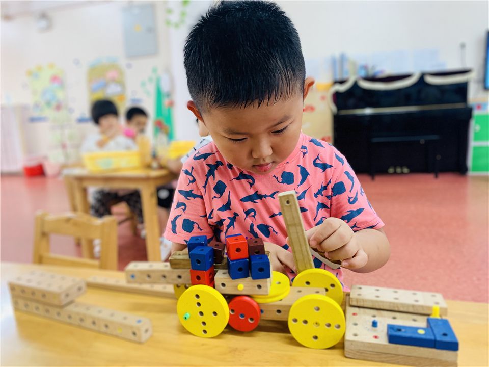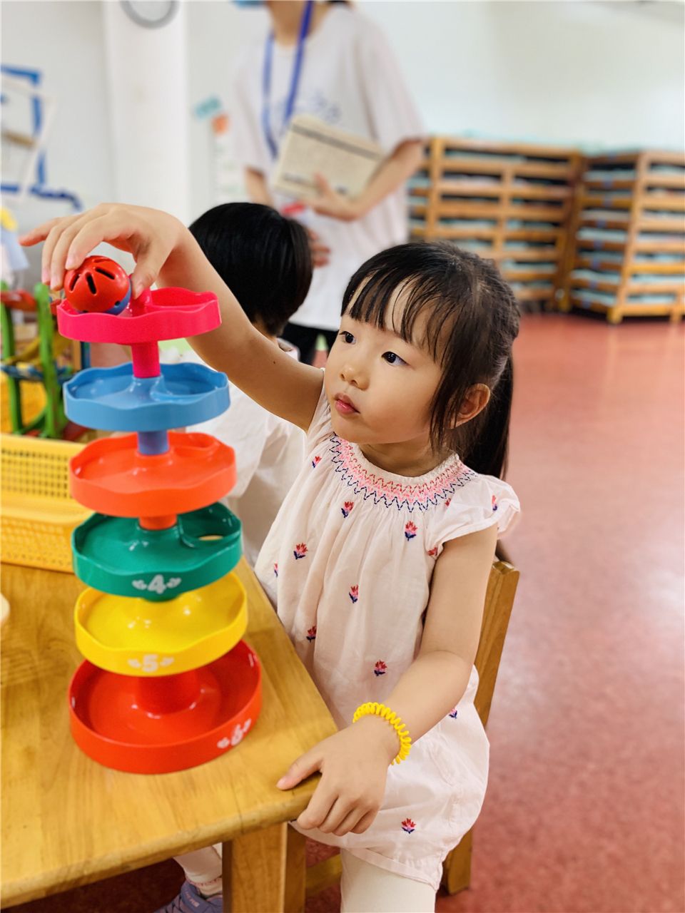 益智区里的操作材料,可是要经过一番思索的哟!这也难不倒我们中三班的萌娃,他们倆倆合作,一起动脑经完成任务。
