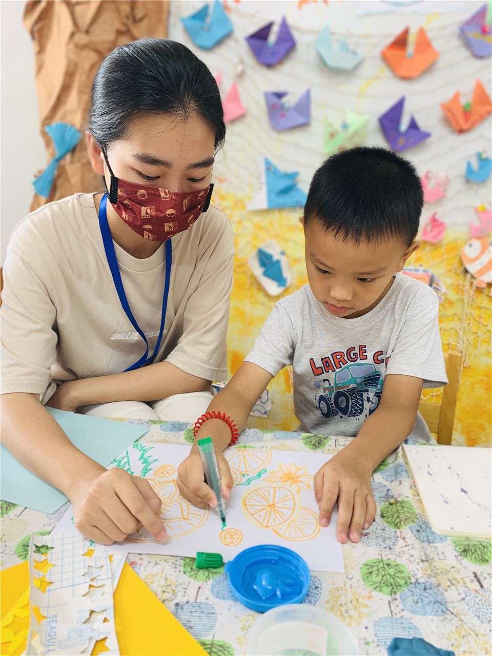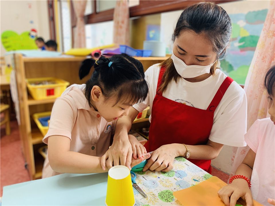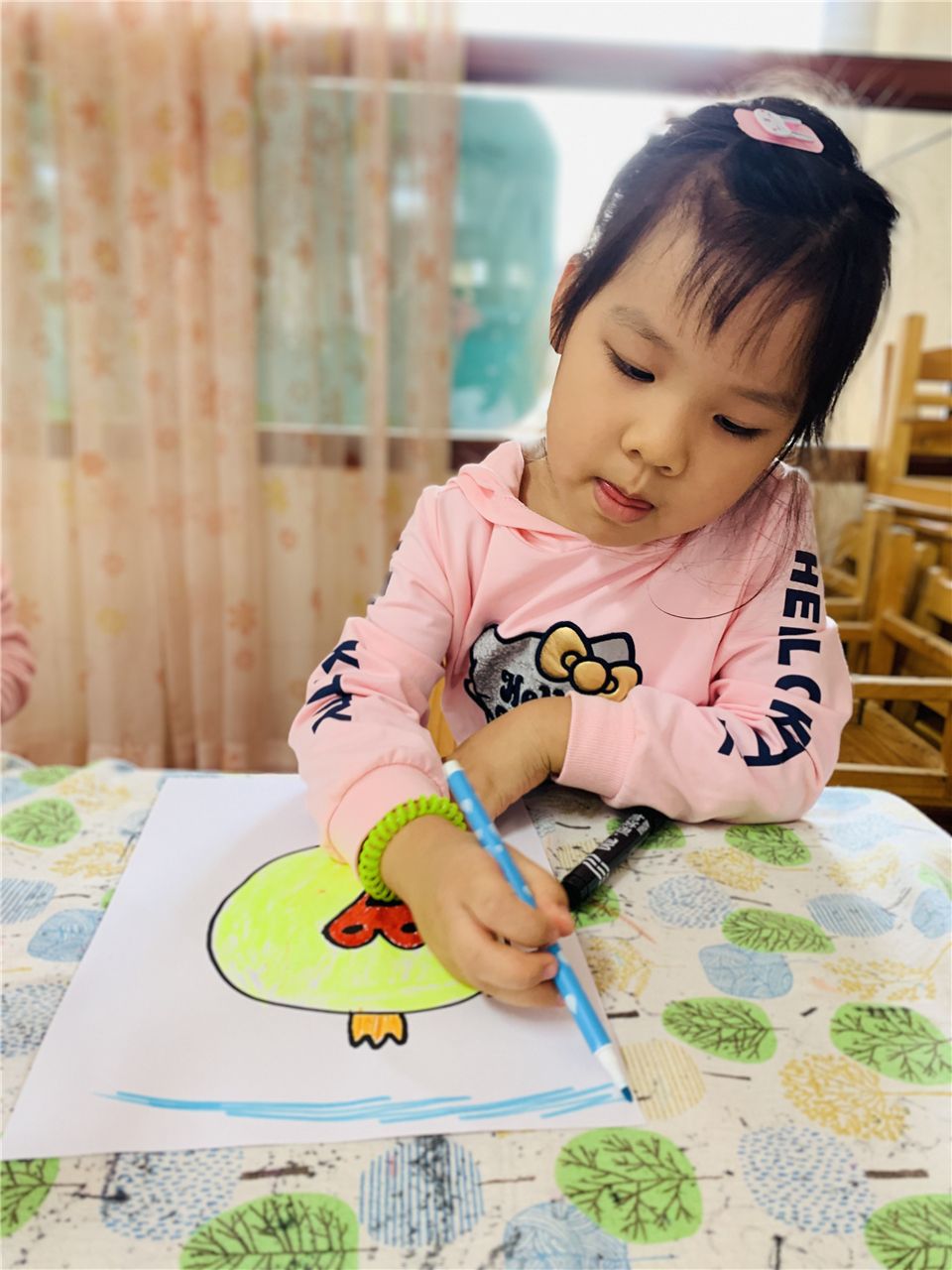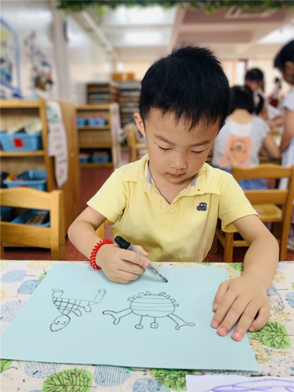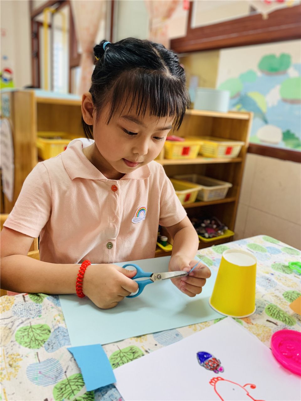 美术区里,小朋友们正在专注地画着、剪着、黏贴着。一幅幅可爱的画卷、一个个稚嫩的手工作品,体现了中三班小朋友的智慧和巧手。