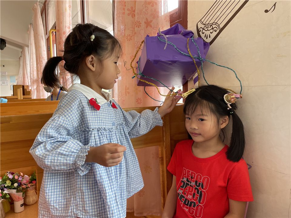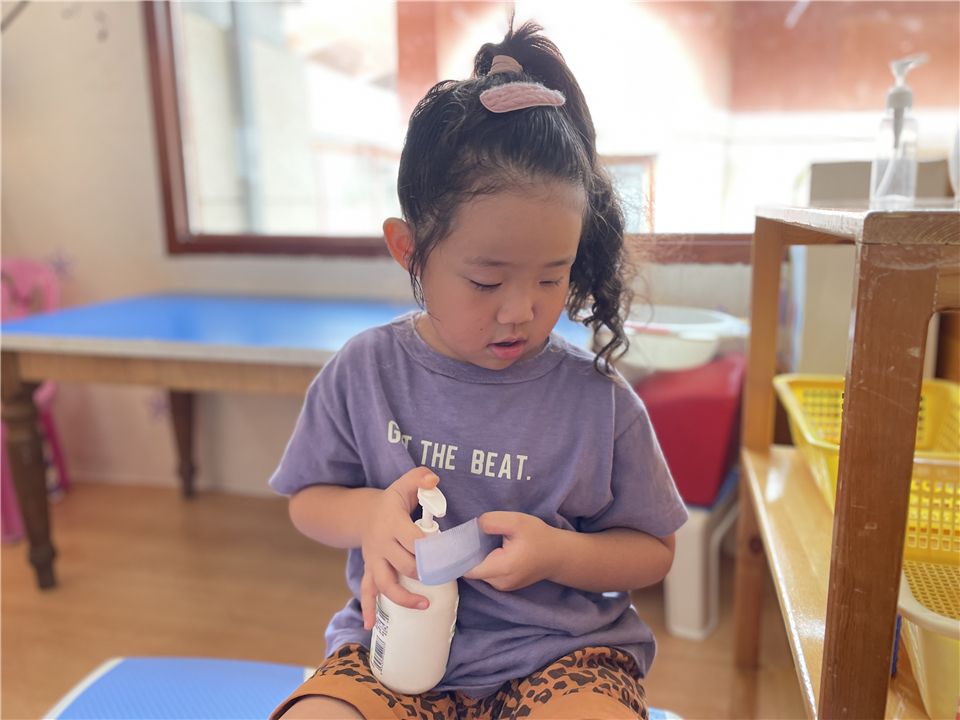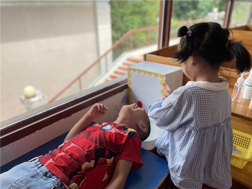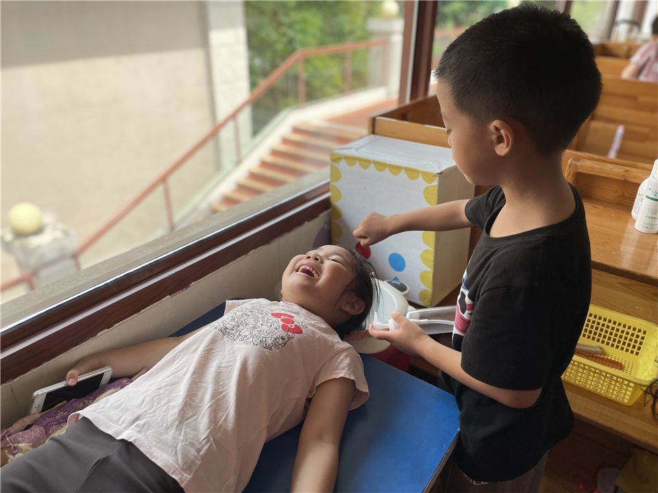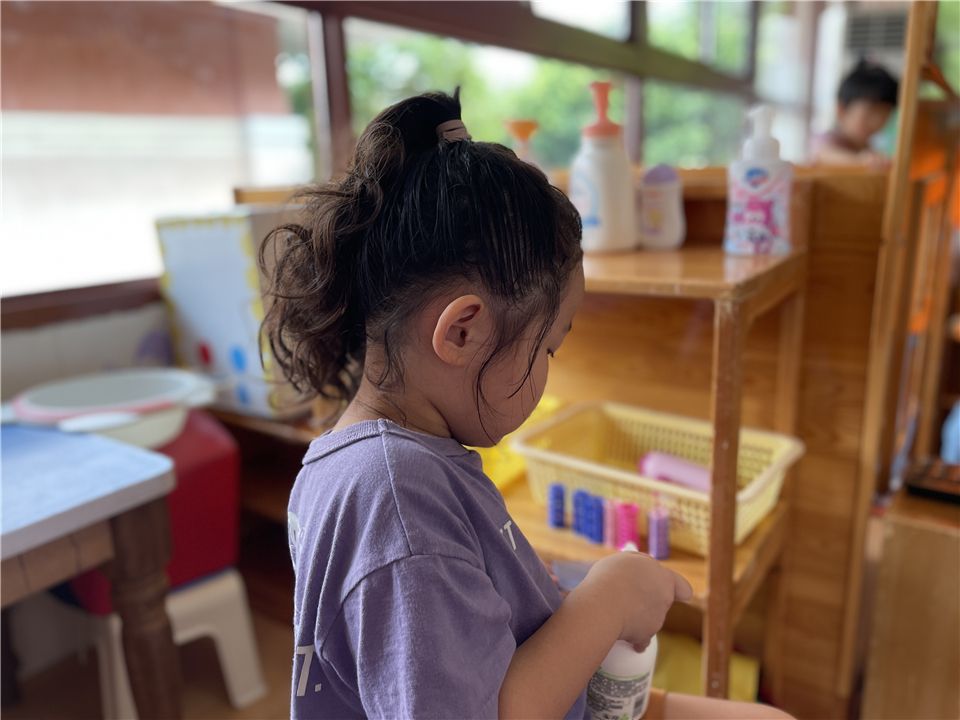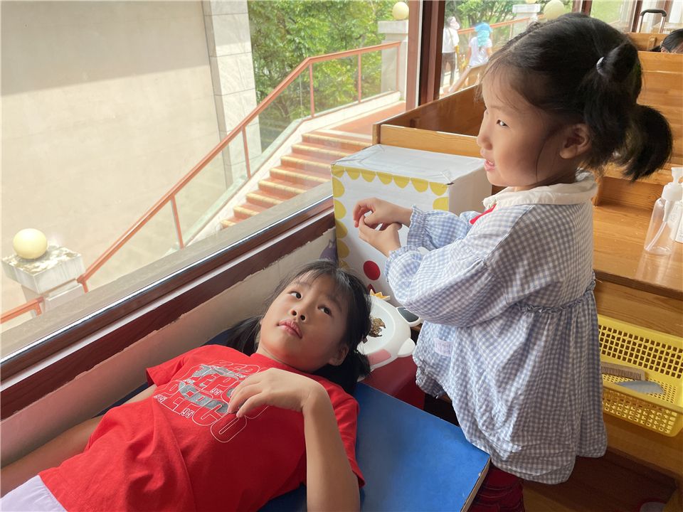 萱萱:“我在材料柜里看过一个脸盆,放在小椅子上就可以当成洗头发的水池了!”