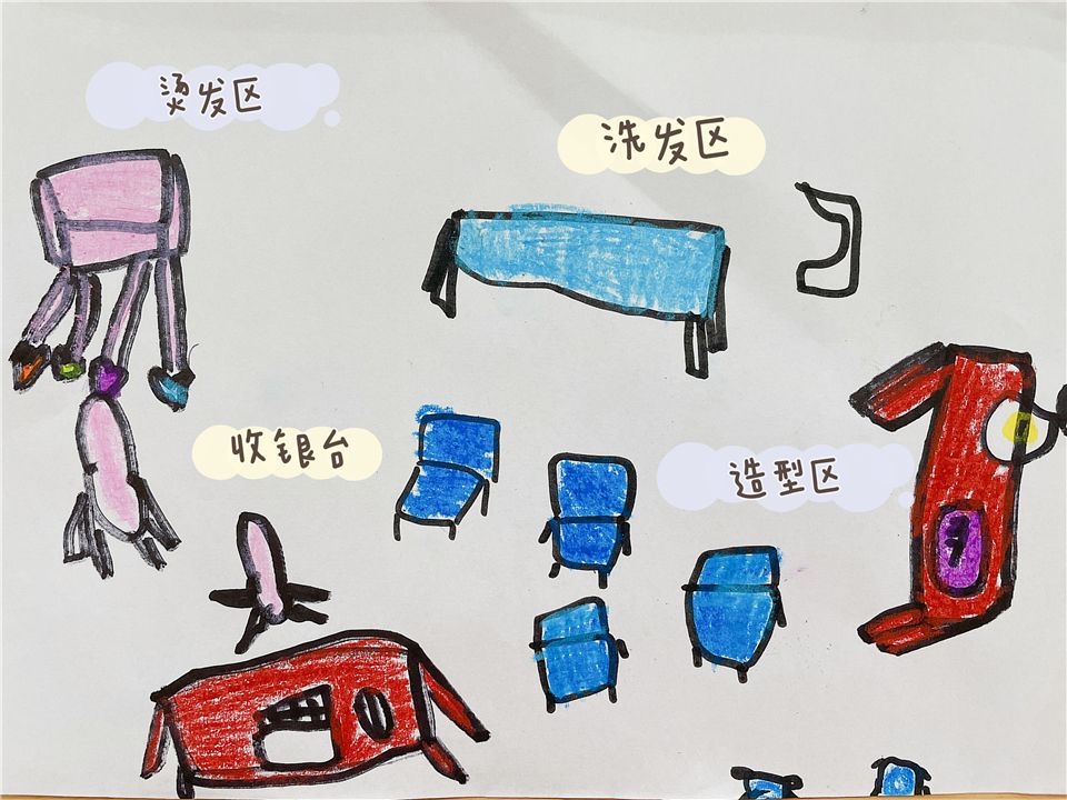 咚咚:“我们把理发店建的大一点吧!客人坐的椅子往外放一点。”