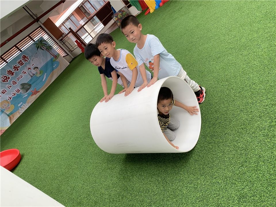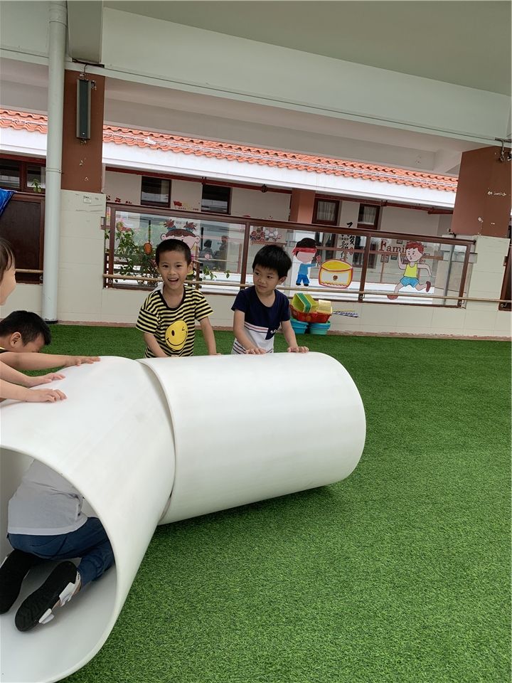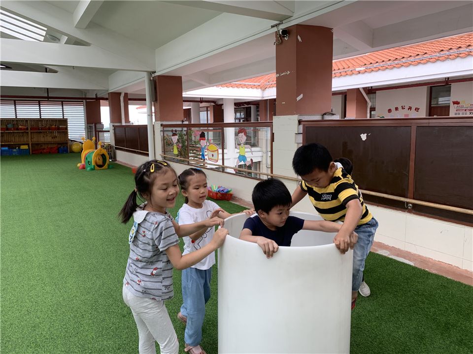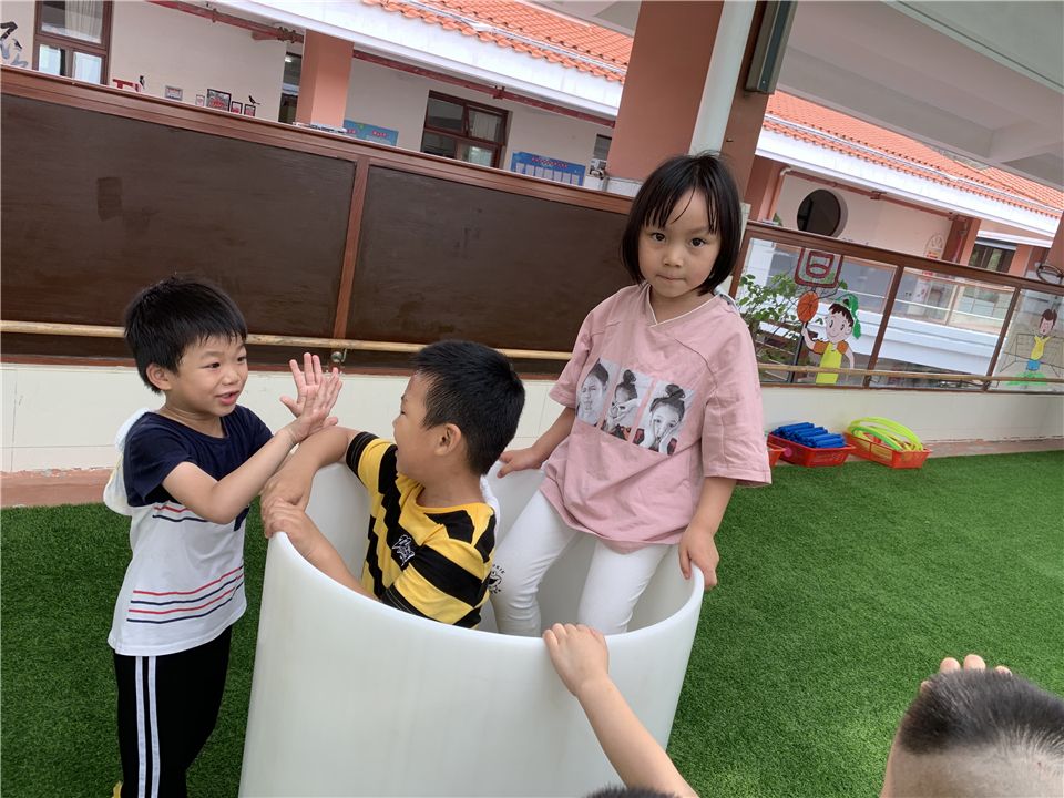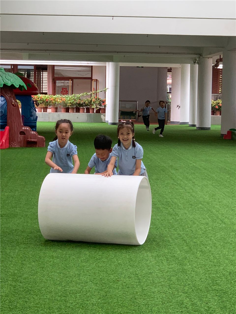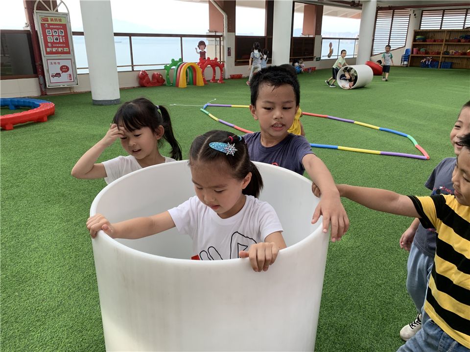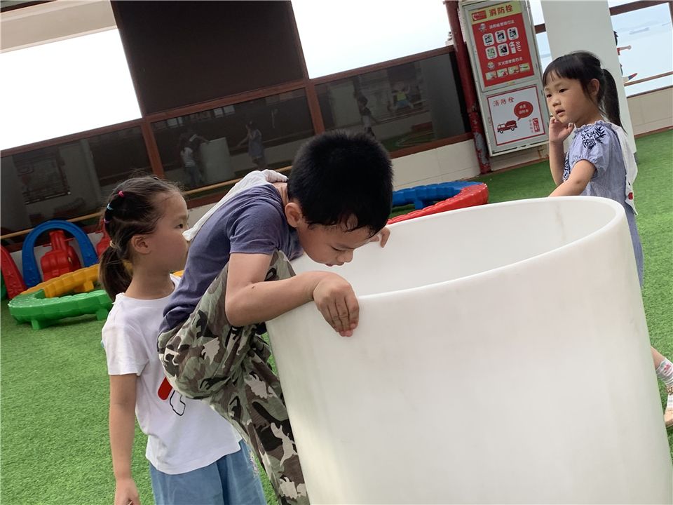 我们在天台户外运动场上与它近距离接触,这幼儿园最大号的管子特别的亮眼,是我们中四班宝贝近期特别热衷于挑战的一个运动器械。