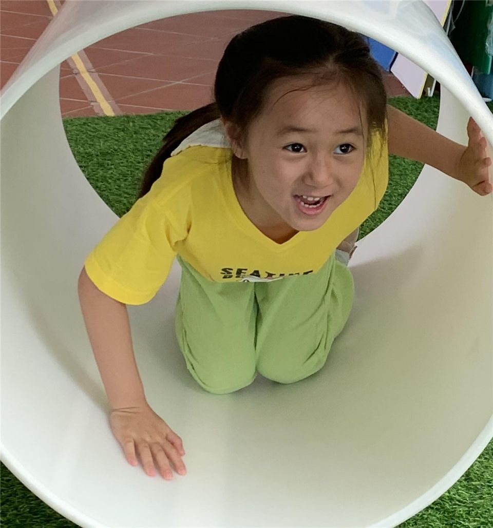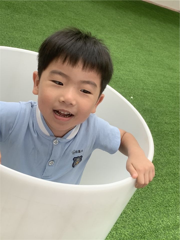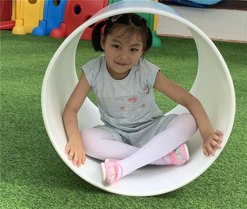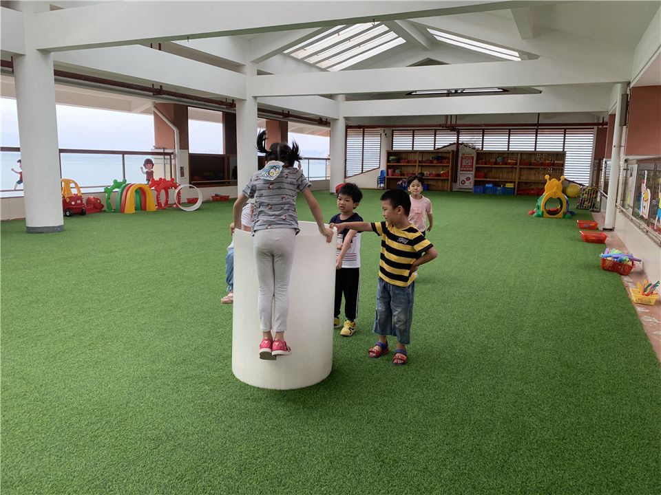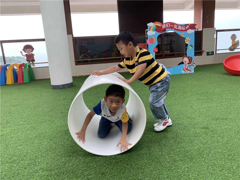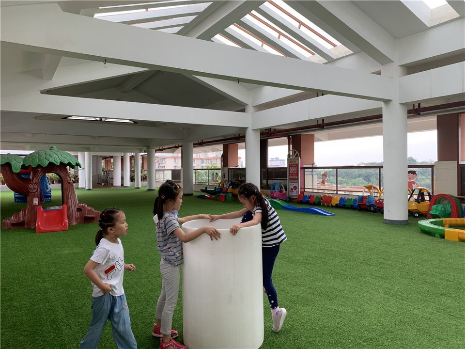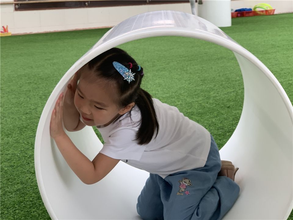 我们在天台户外运动场上与它近距离接触,这幼儿园最大号的管子特别的亮眼,是我们中四班宝贝近期特别热衷于挑战的一个运动器械。