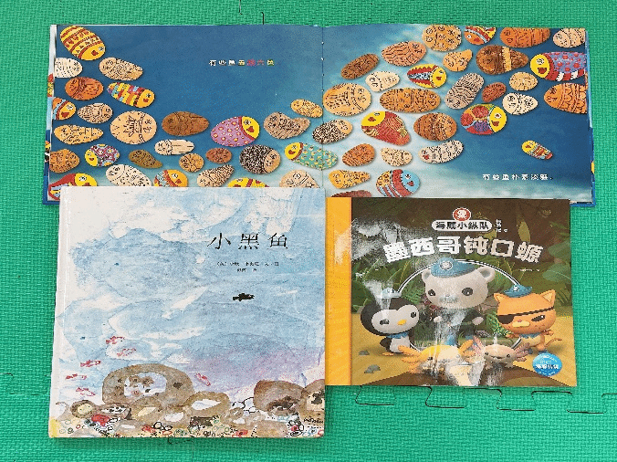 宝贝们的讨论越来越热烈,对海洋世界的兴趣也越来越浓厚,宝贝们收集了各种各样的海洋书籍,和同伴们一起分享阅读。在老师的带领下,还一同前往南强书苑,他们认真的聆听老师讲述绘本《回到大海》的故事。在离园前、阅读区角活动时间、午餐过渡环节,宝贝们还一起安安静静地阅读海洋书籍,这已经成了芽芽班一道亮丽的风景线。