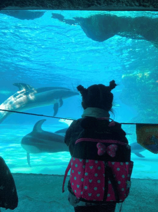 “婧婧老师,我去过海洋馆,在那里,我看见了好多不一样的鱼!红的黄的、白的黑的、大的小的……”