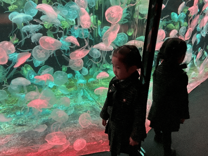 宝贝们小脸上携带着纯真的好奇、洋溢着快乐的笑容。瞧,宝贝们随着爸爸妈妈一道,迈着整齐的步伐,秩序井然地欣赏着海洋科技博物馆里的一切……