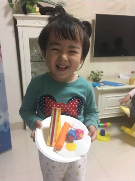 “我的水饺还有荷包蛋都是用橡皮泥压一压、包一包,再捏一捏就做出来咯。”