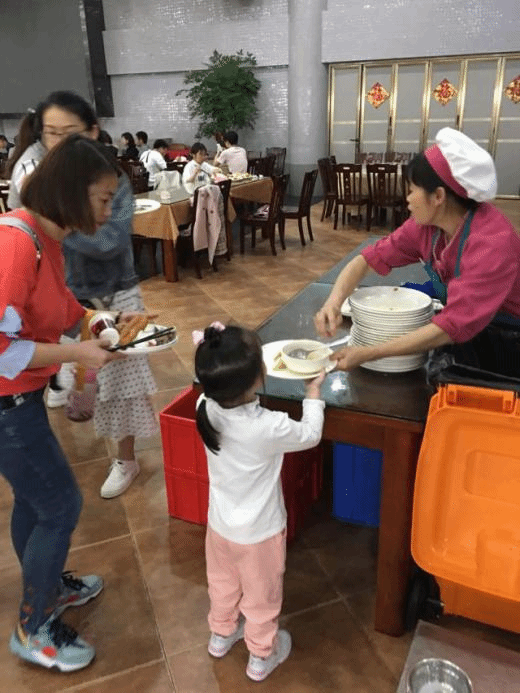 餐厅文明习惯,人人都应遵守! 孩子们享用完美食,纷纷带上自己的餐具来到餐具回收处的碗筷输送带前,在服务员阿姨的指导下,终于分类收拾好啦!