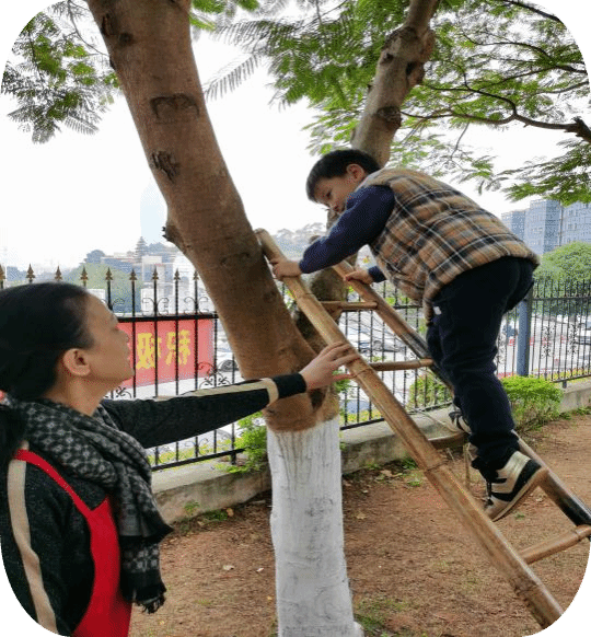 教师充分挖掘高校的教育资源,满足了幼儿探究的欲望,支持了幼儿探究的需求。这一次小小的攀树活动,集体力,耐力,技巧与智慧于一体,通过这种形式的创新,既有助于增强儿童自身的身体素质,又可以锻炼他们坚强,勇敢,不怕困难的意志力,也满足了孩子们对攀树活动的好奇心和对攀树活动的探究欲望,达到一举多得的目的。